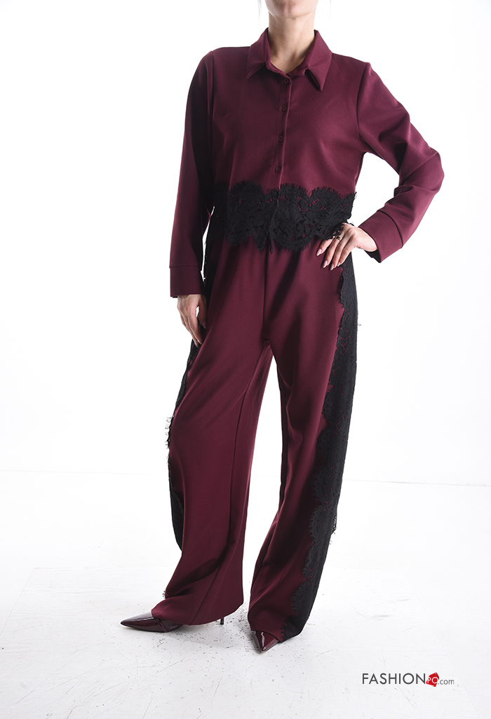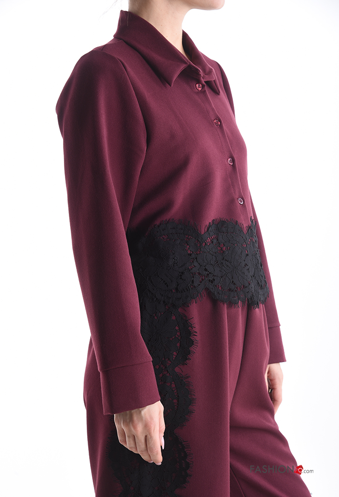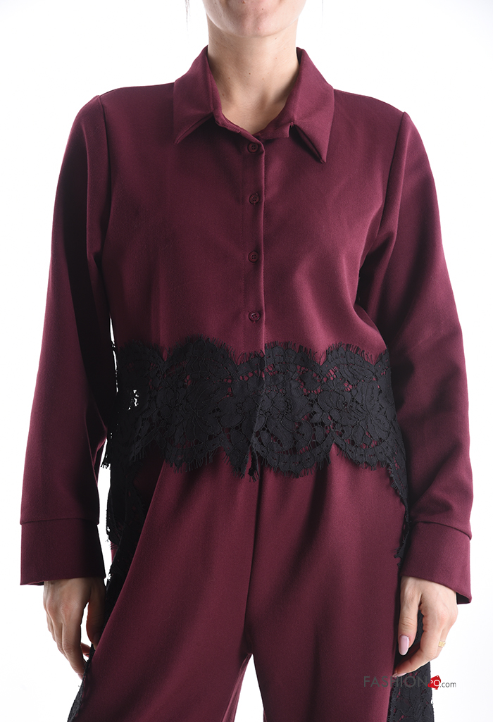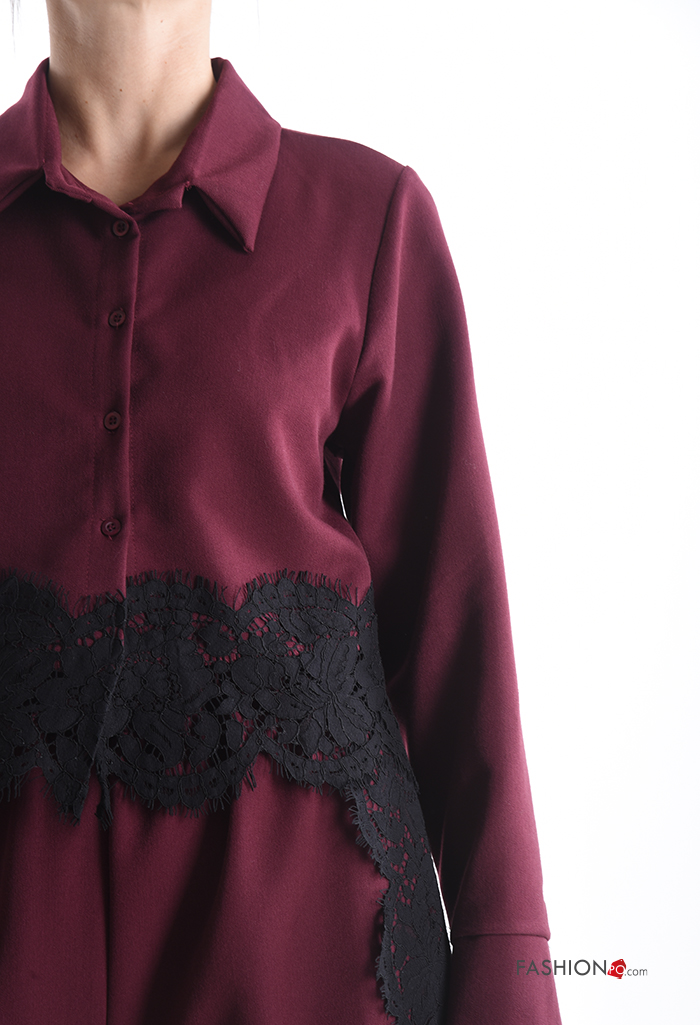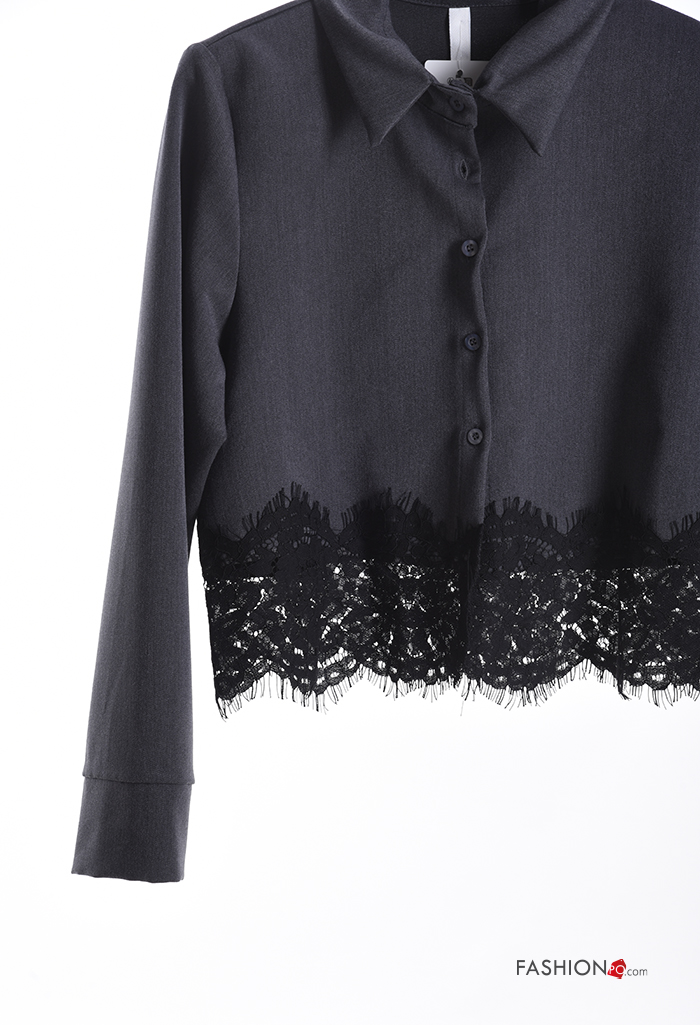 Spitze- mit kragen kurz lange ärmel Hemd mit Knöpfen