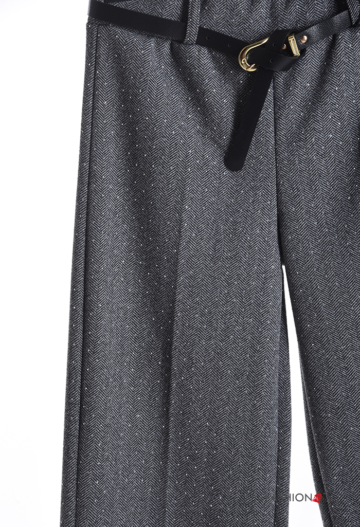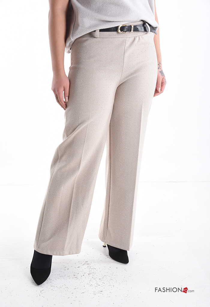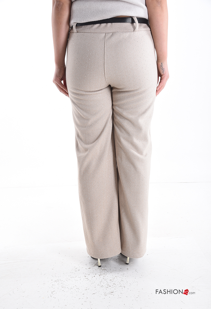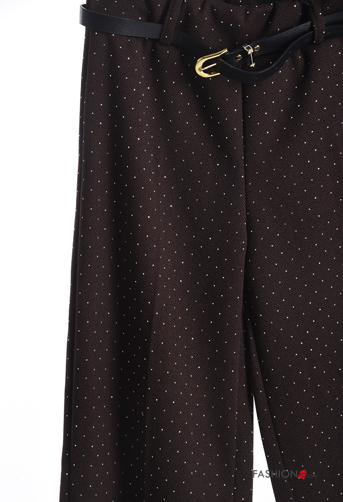 Home > Kleidung > Hosen > Chevron Muster wide leg Hose mit Gürtel mit gummizug mit Strasssteinen