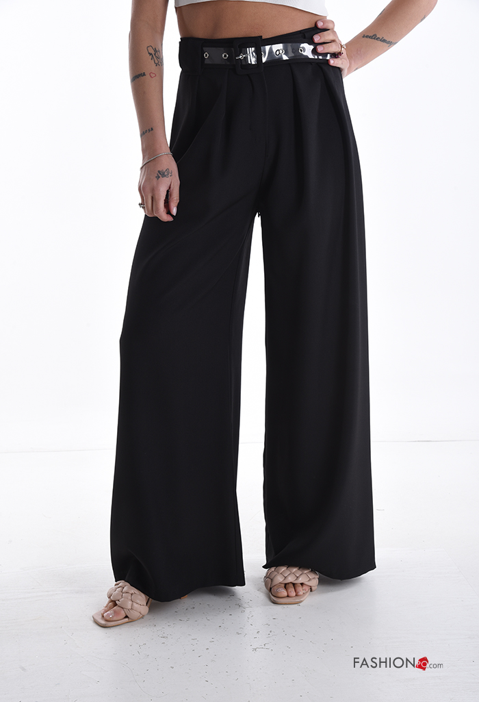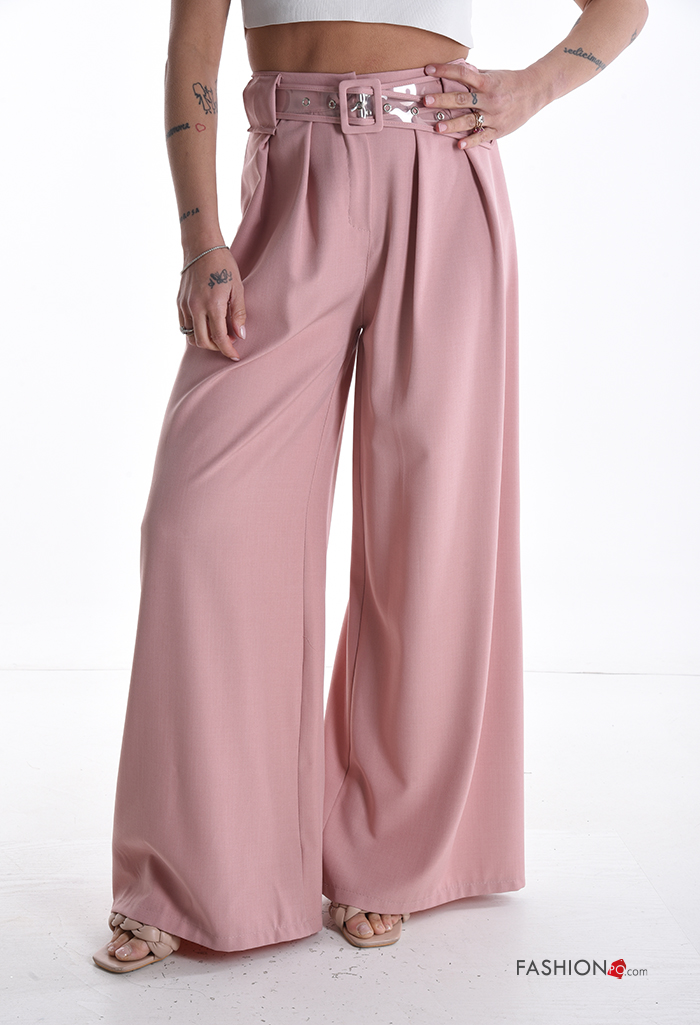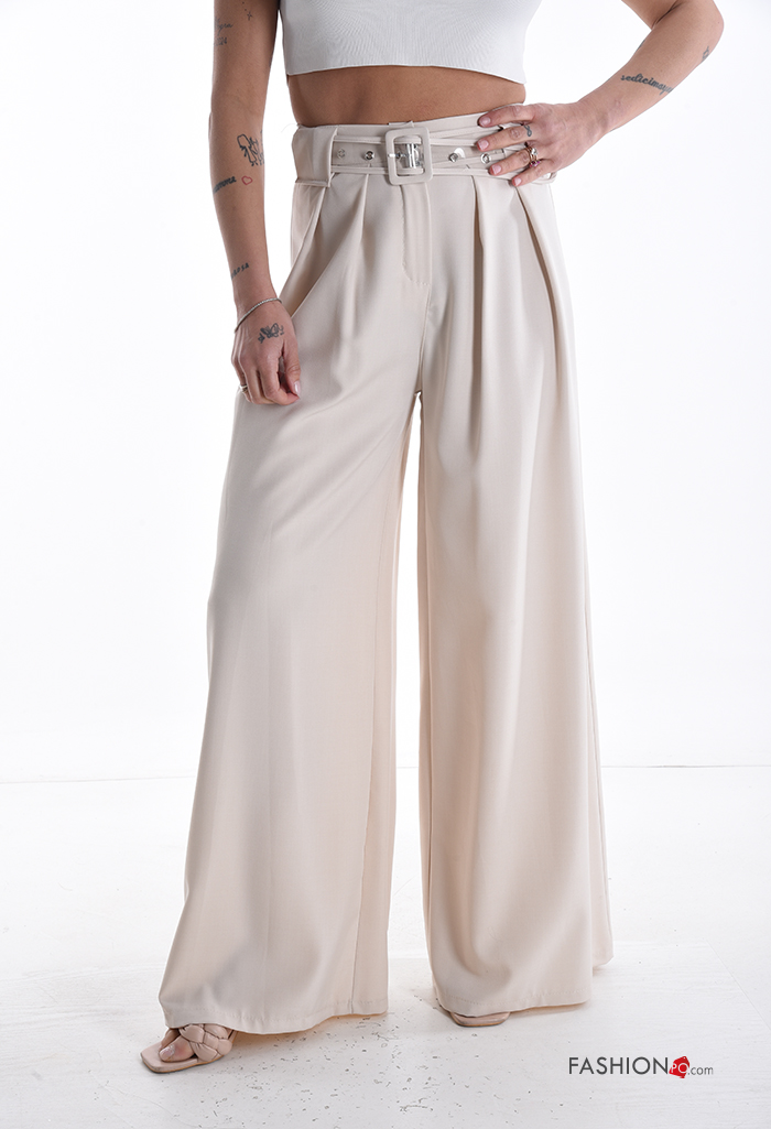 hoher Taille wide leg Hose mit Gürtel