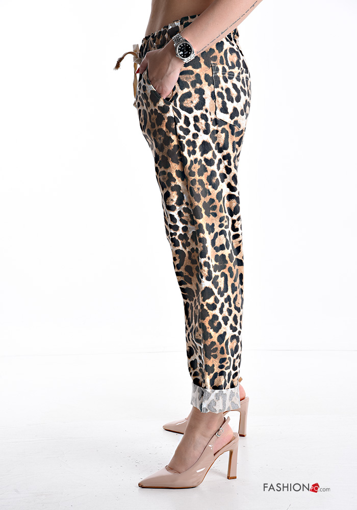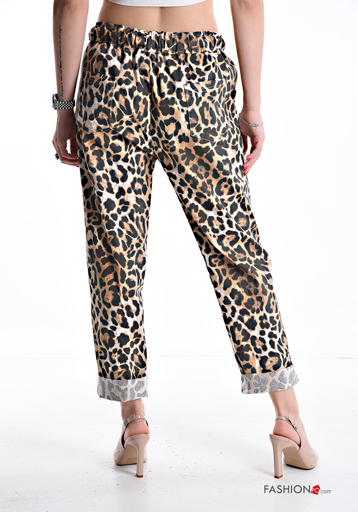 Tiermuster Hose aus Baumwolle mit Taschen mit gummizug mit kordelzug