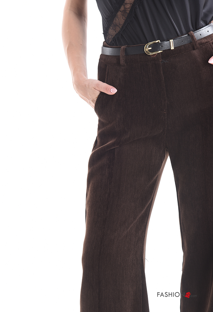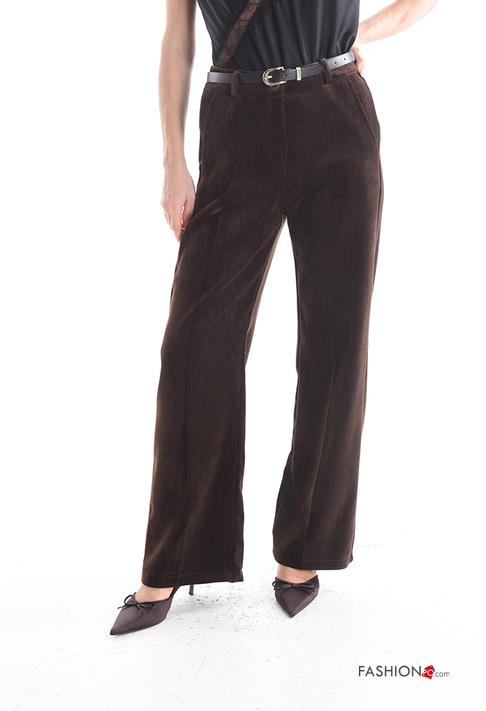 Home > Kleidung > Hosen > Samt wide leg Hose mit Gürtel mit Reißverschluss mit Taschen mit Knöpfen