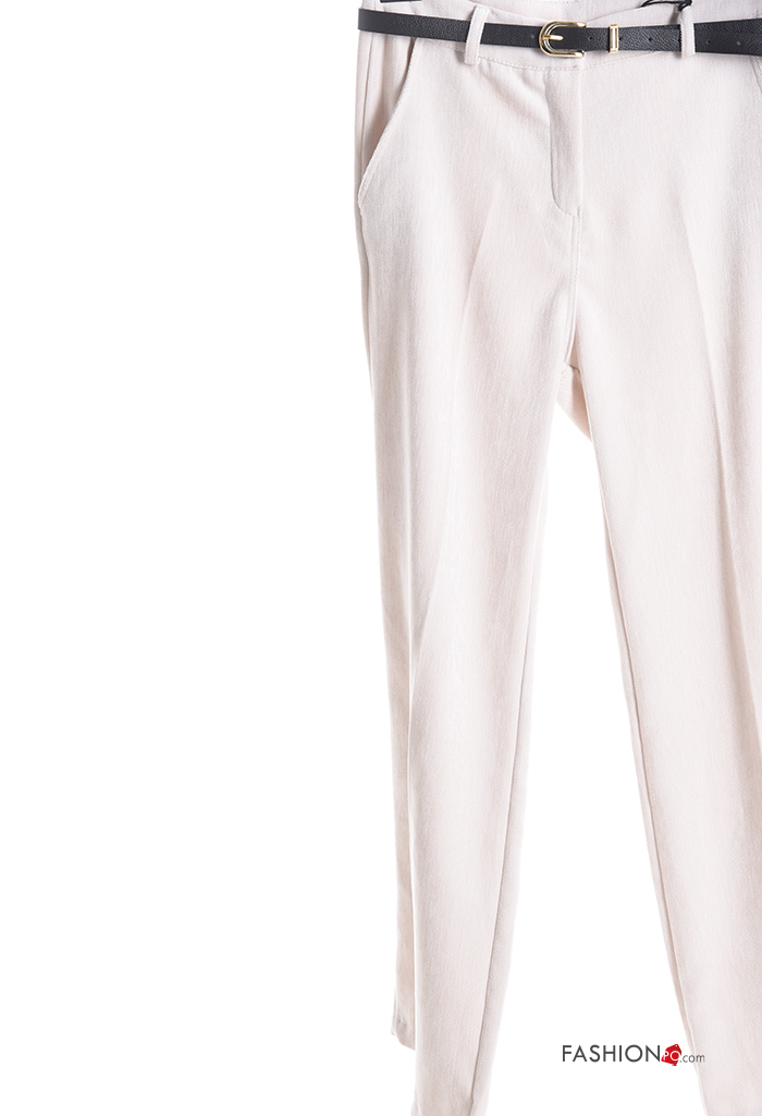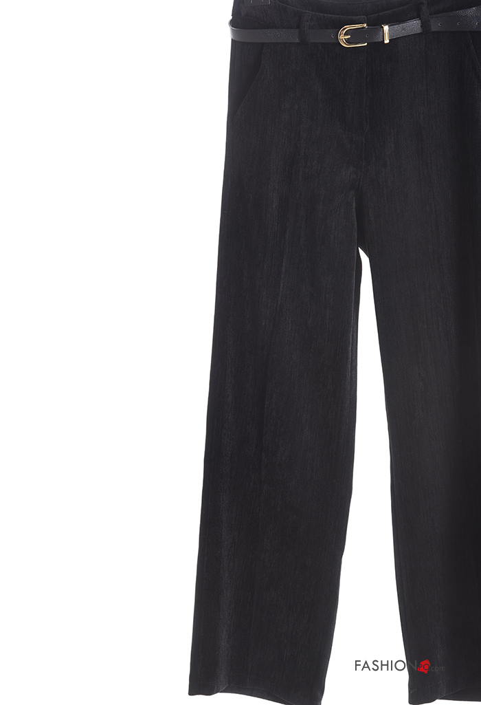 Samt wide leg Hose mit Gürtel mit Reißverschluss mit Taschen mit Knöpfen
