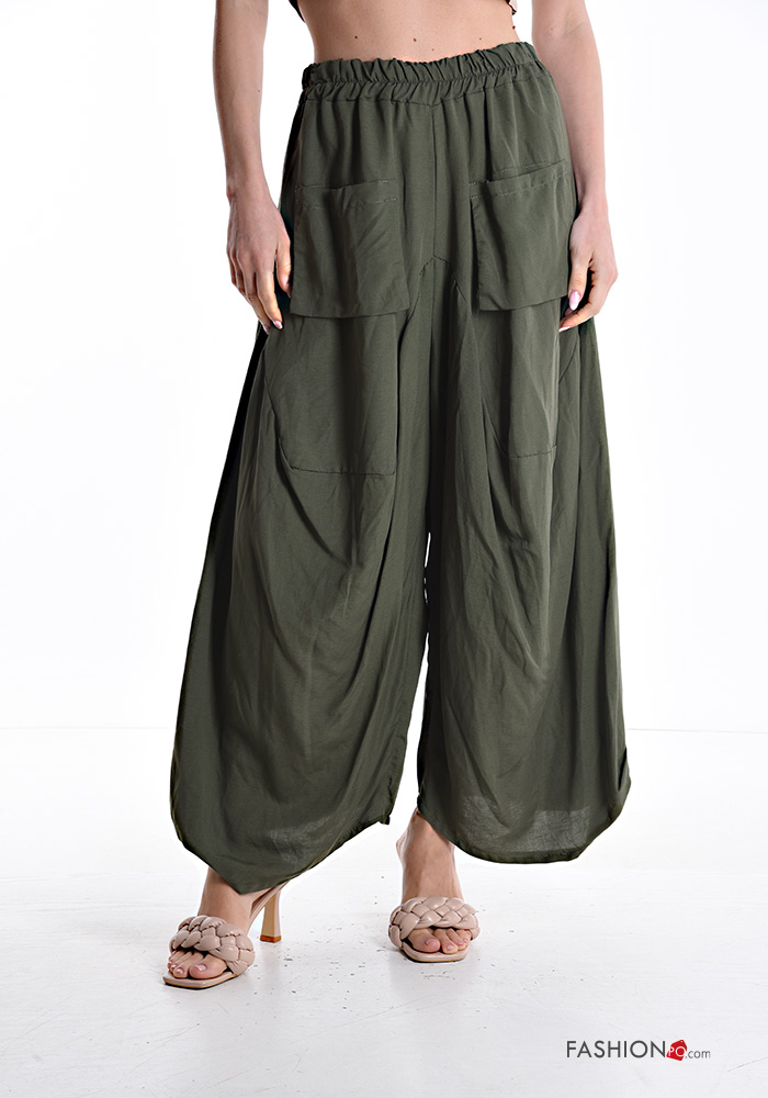 Oversize wide leg Hose aus Leinen mit Taschen mit gummizug