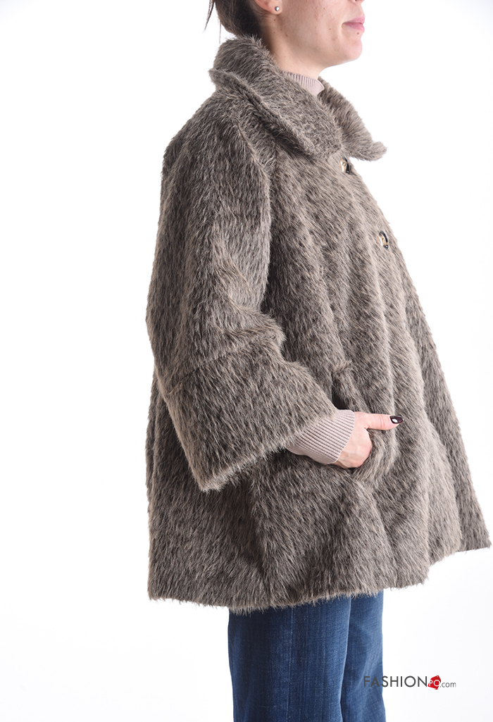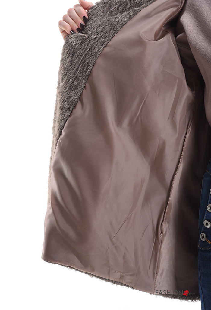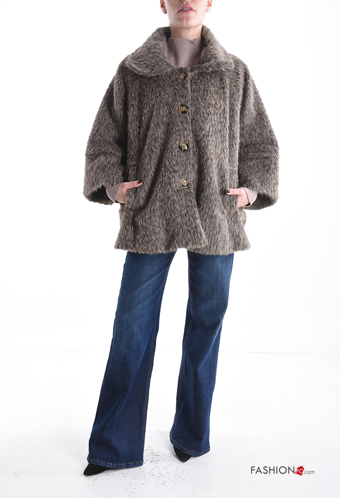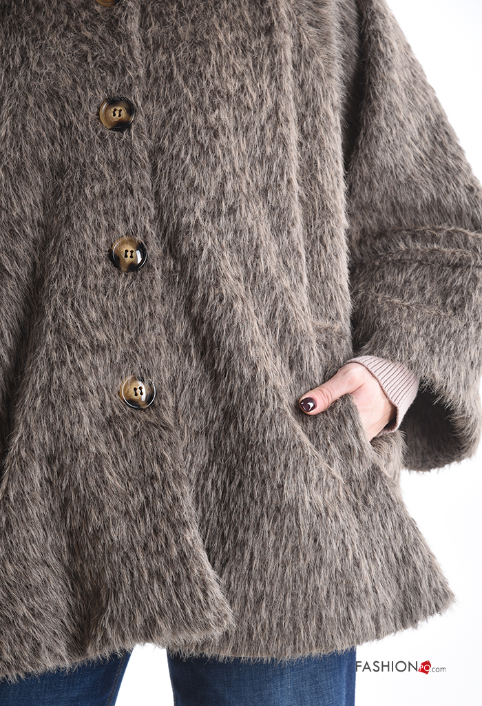 lange ärmel mit kragen Mantel mit Knöpfen mit Futter mit Taschen