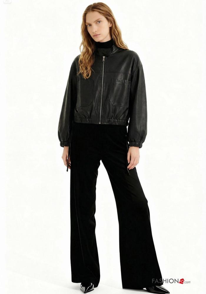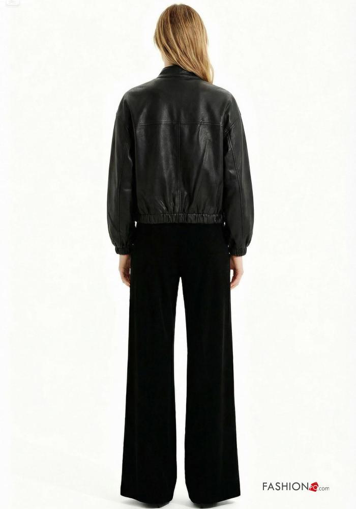 Kunstleder u-boot ausschnitt lange ärmel Bikerjacke mit Knöpfen mit kordelzug mit Taschen