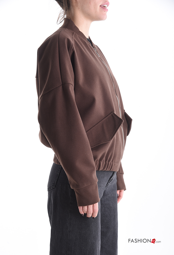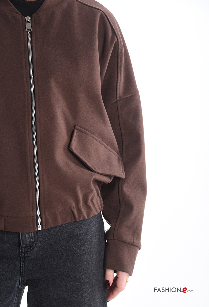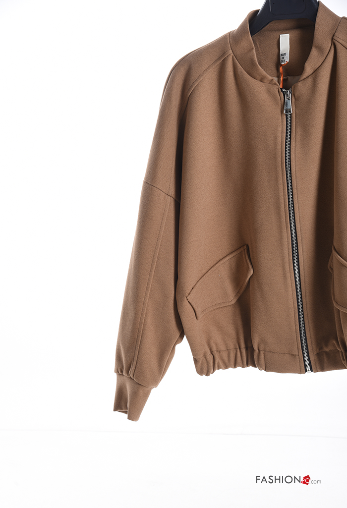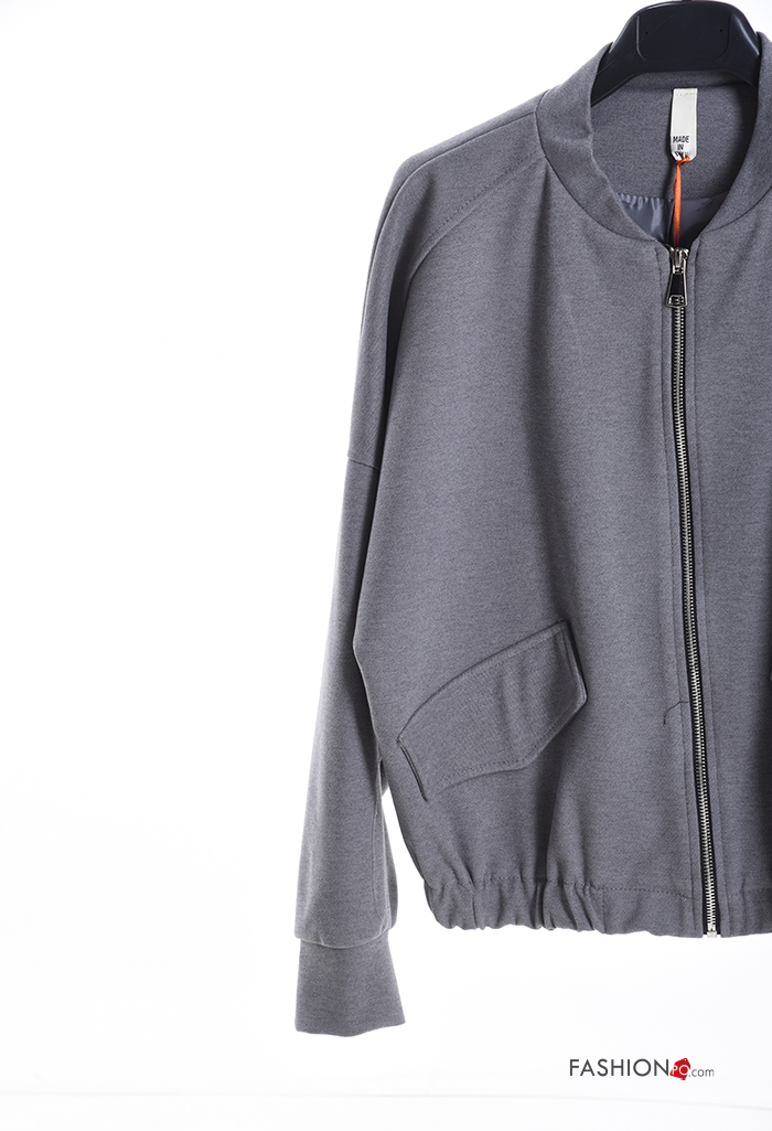 lange ärmel Bomberjacke mit Reißverschluss mit gummizug mit Futter