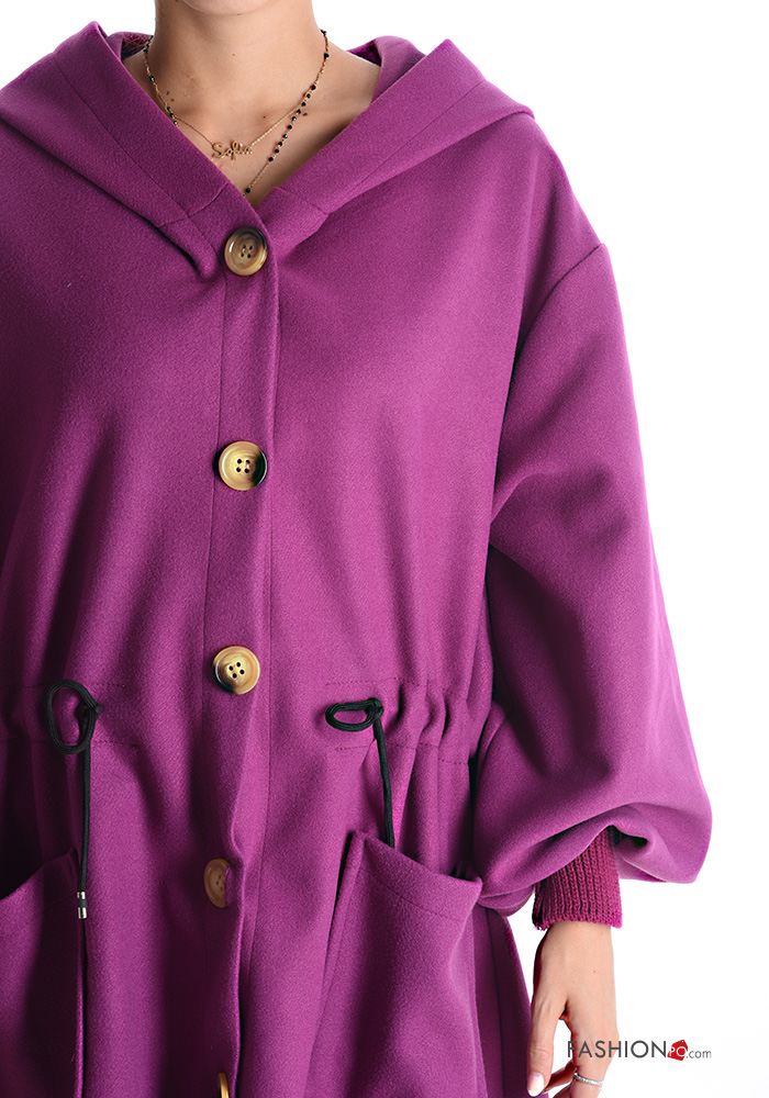lange Duster-Mantel mit Knöpfen mit kordelzug mit Kapuze mit Taschen