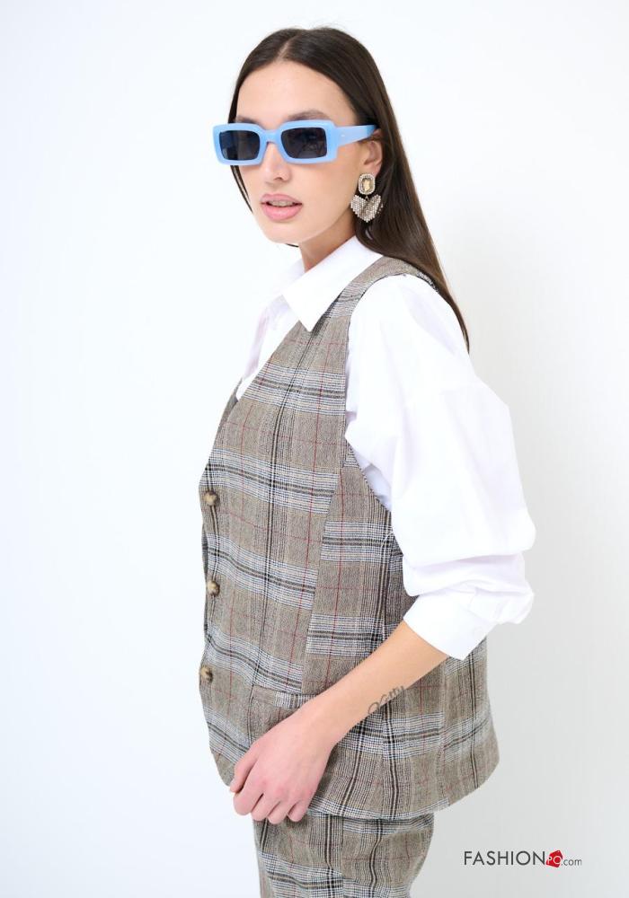 Tartan-Muster Weste aus Baumwolle mit Knöpfen