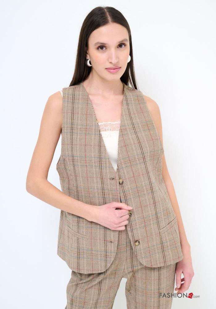 Home > Kleidung > Jacken & Mäntel > Tartan-Muster Weste aus Baumwolle mit Knöpfen