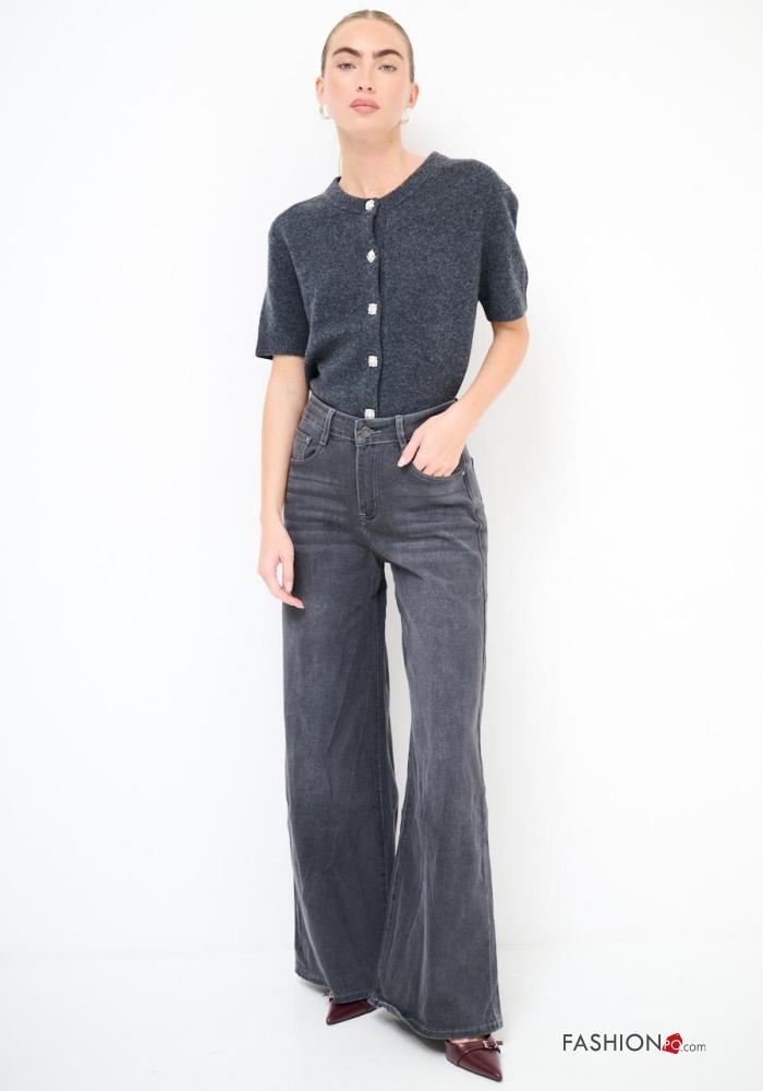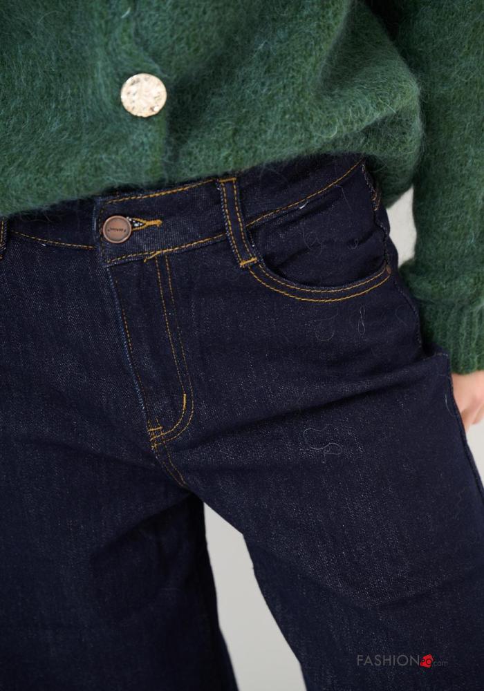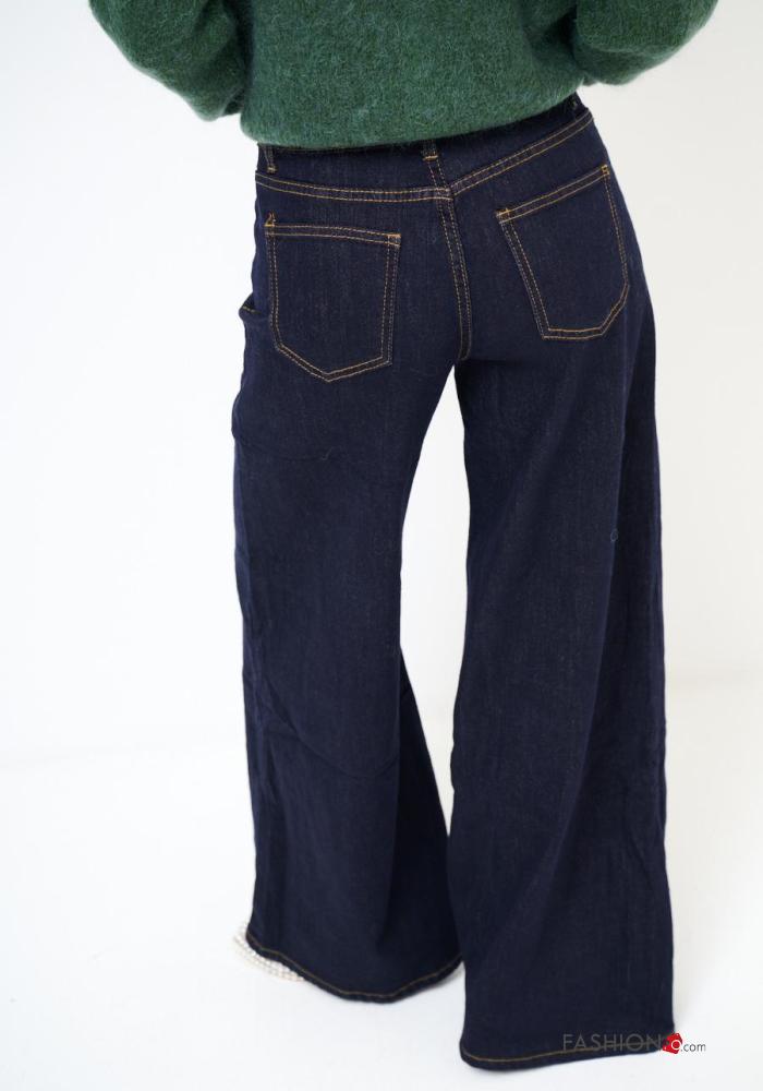 Denim ausgestellte Jeans aus Baumwolle mit Knöpfen mit Reißverschluss mit Taschen