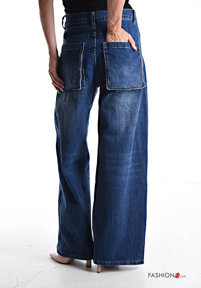 Denim wide leg Jeans aus Baumwolle mit Taschen mit Reißverschluss