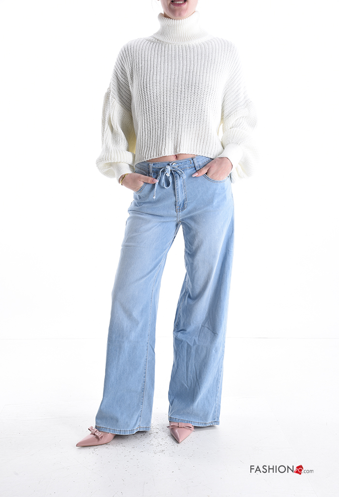 Denim wide leg Jeans aus Baumwolle mit Knöpfen mit Reißverschluss mit Schleife mit Taschen