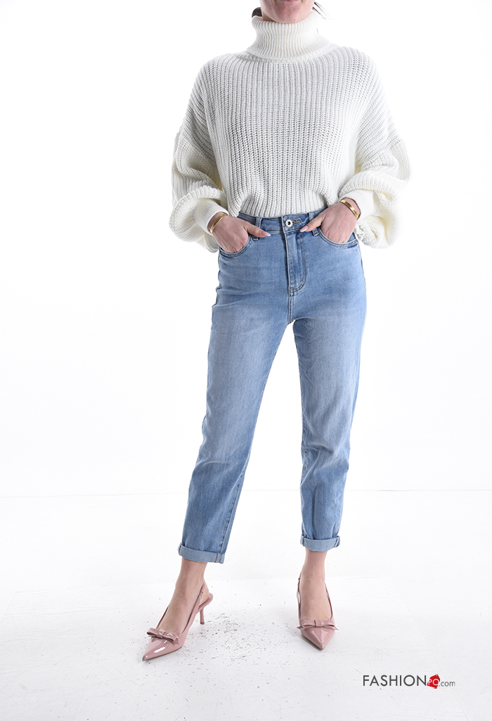 Home > Kleidung > Jeanshose > hoher Taille Jeans aus Baumwolle mit Knöpfen mit Reißverschluss mit Taschen