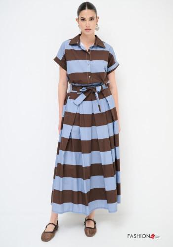 Tartan-Muster Weiter- Rock mit Gürtel mit seil mit Taschen