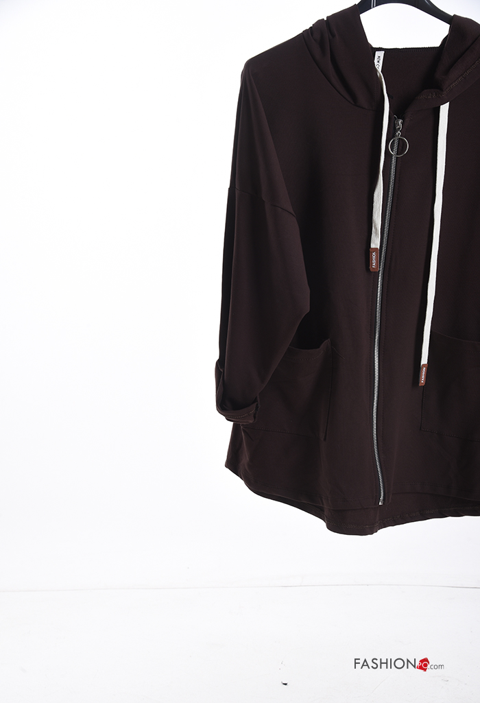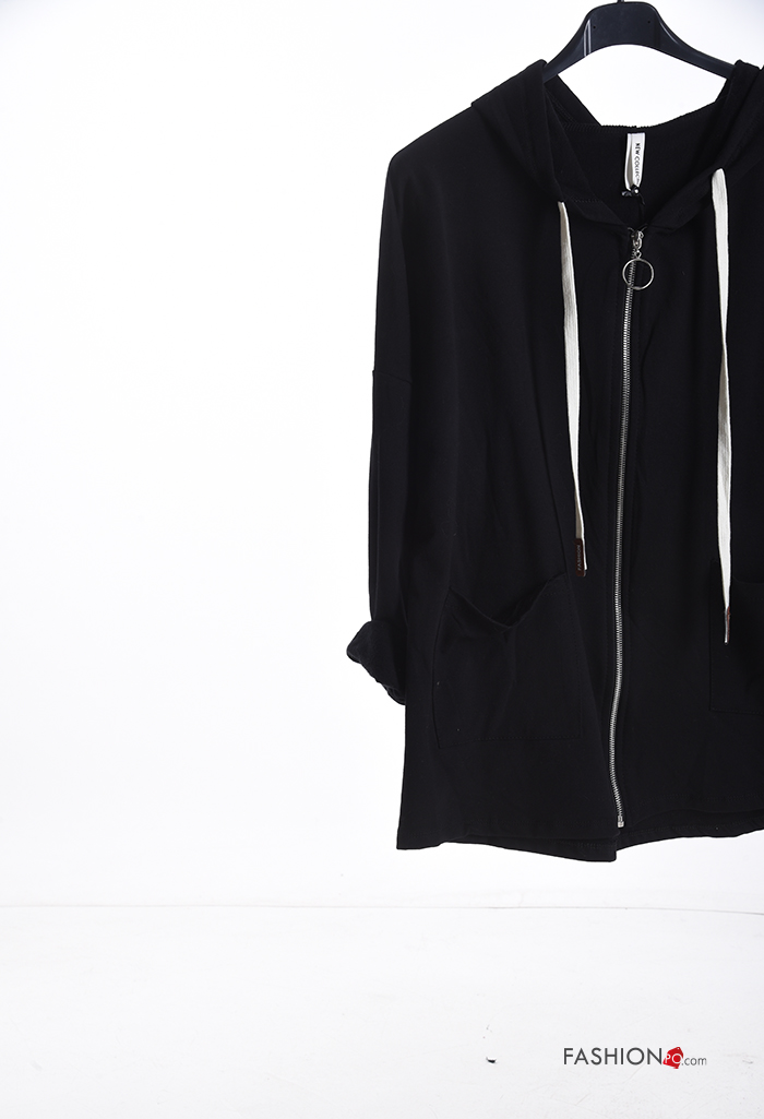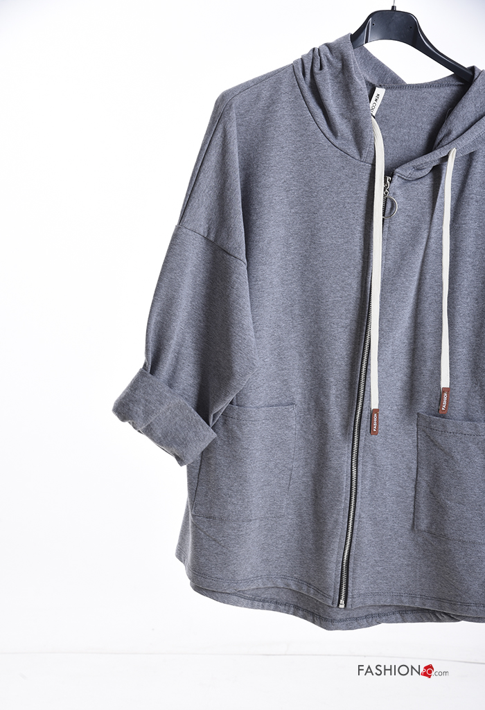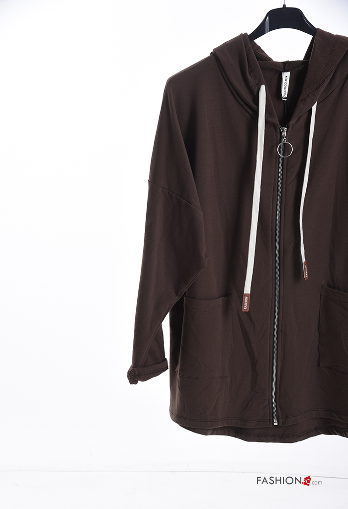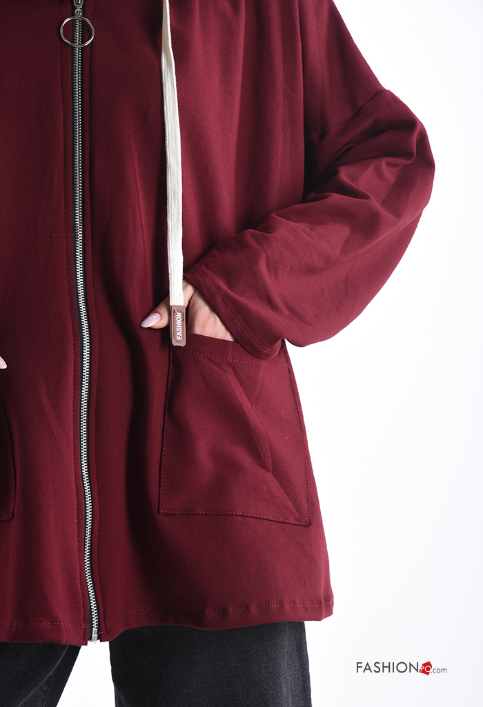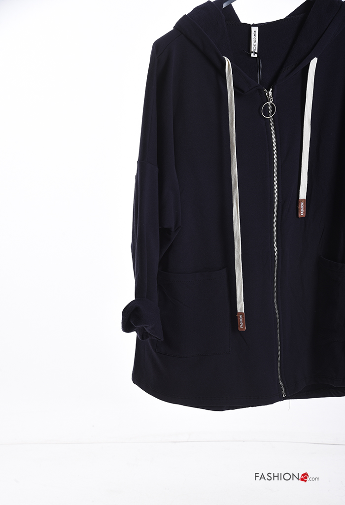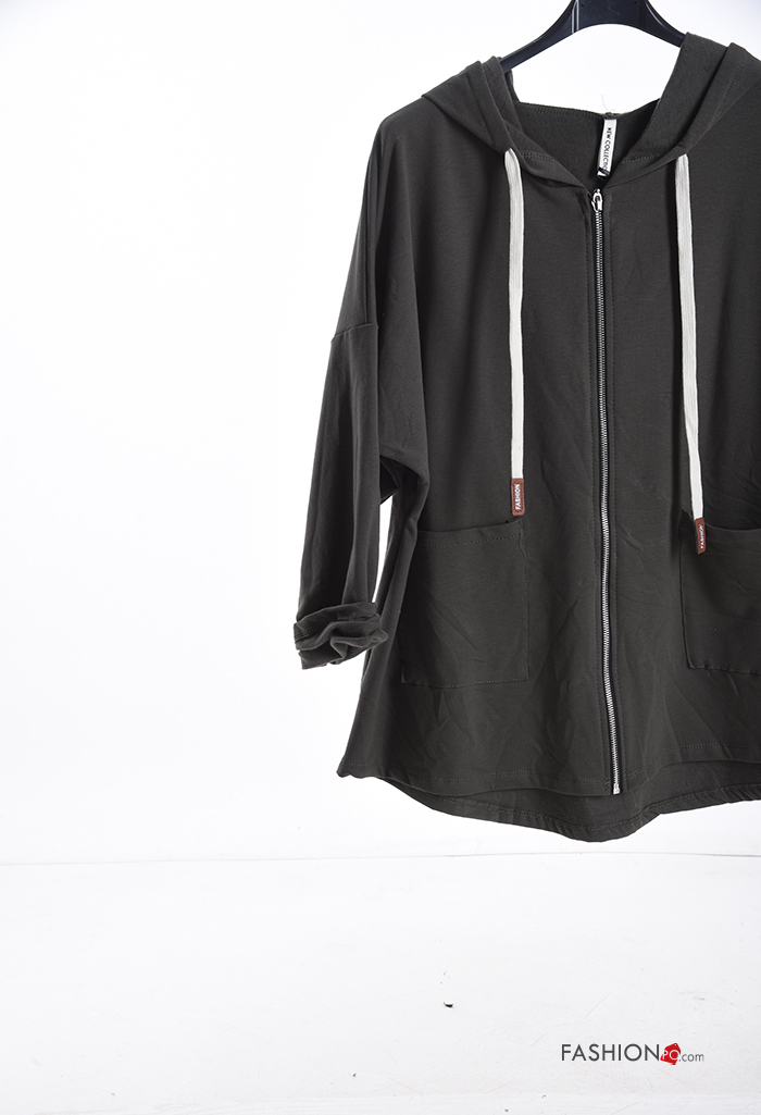 lange ärmel Sweatshirt aus Baumwolle mit Taschen mit Kapuze mit Reißverschluss