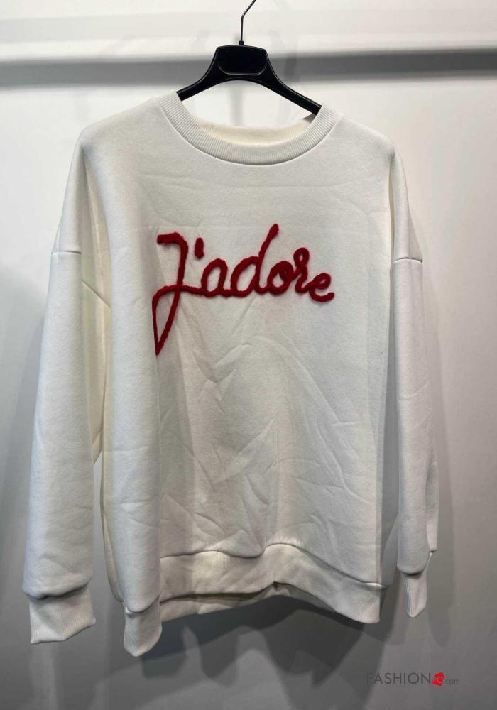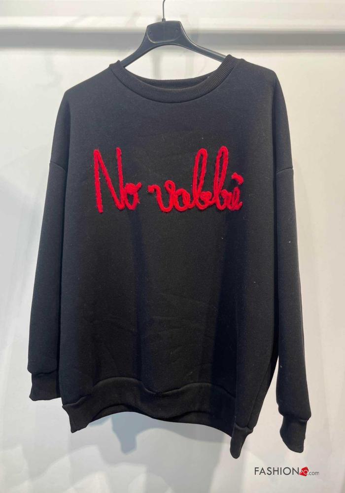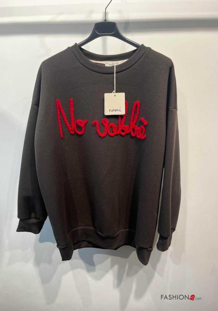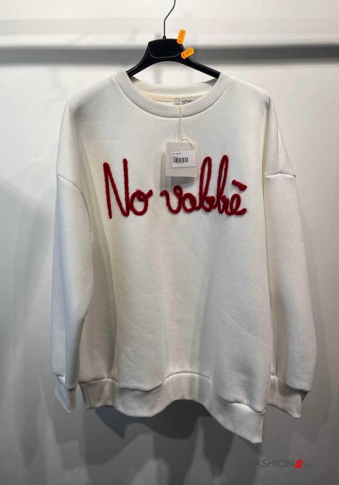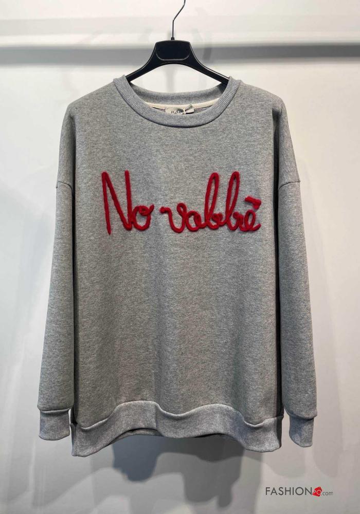 Aufschriftes Muster lange ärmel u-boot ausschnitt Sweatshirt aus Baumwolle