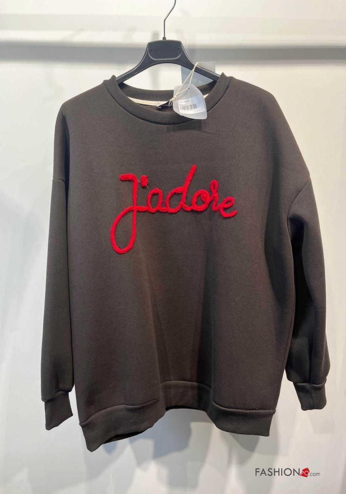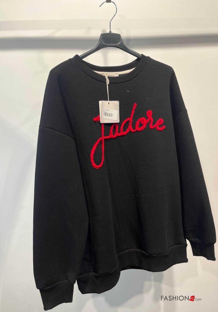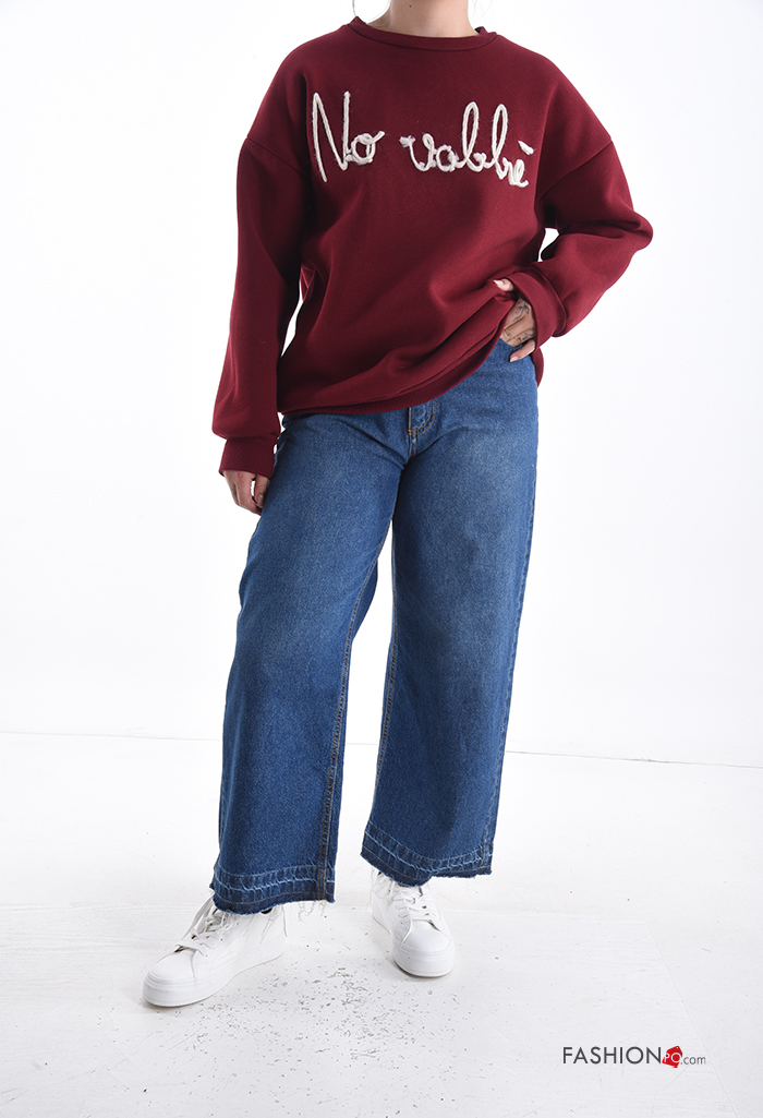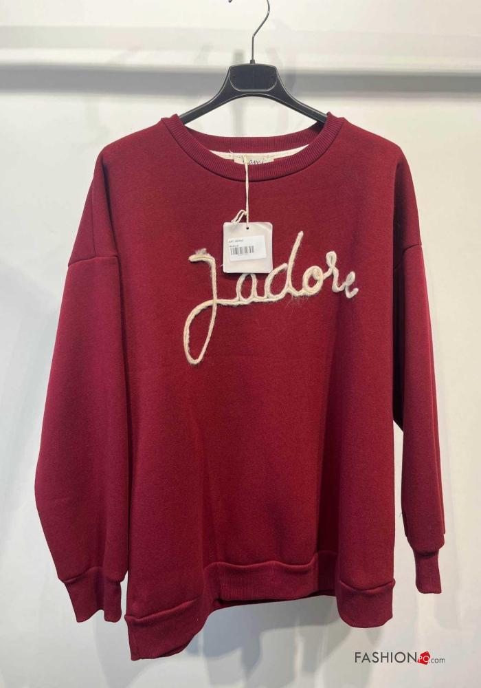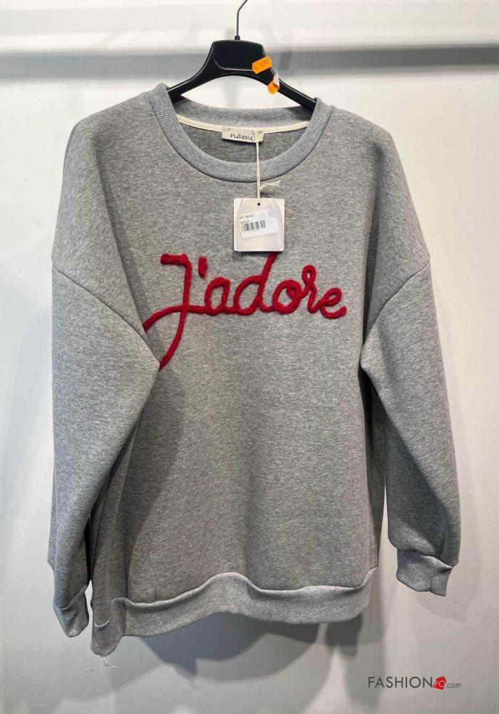 Aufschriftes Muster lange ärmel u-boot ausschnitt Sweatshirt aus Baumwolle