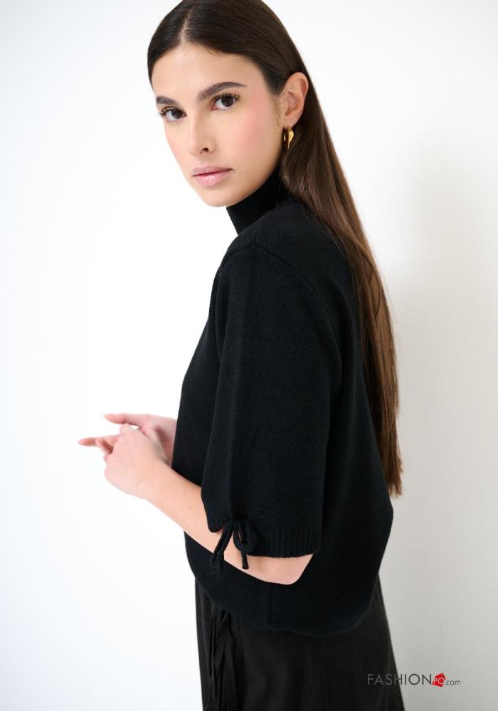 Home > Kleidung > Strickmode & Cardigans > kurze ärmel Rollkragenpullover mit Schleife