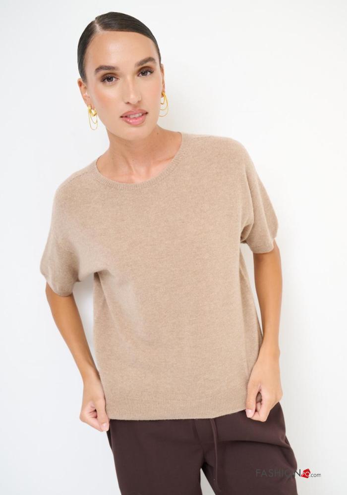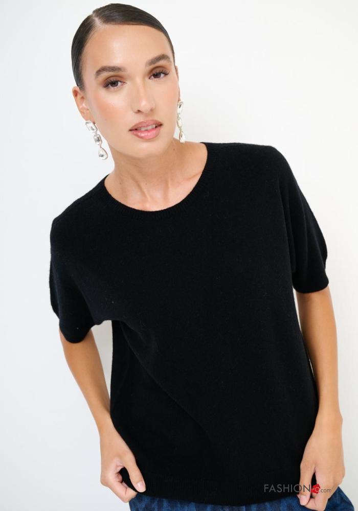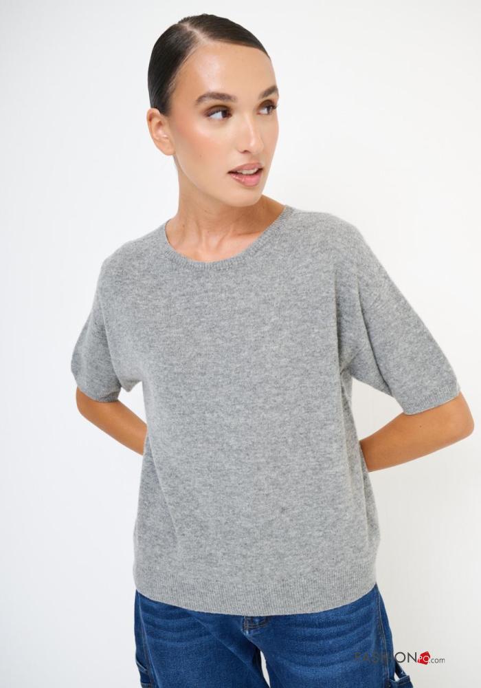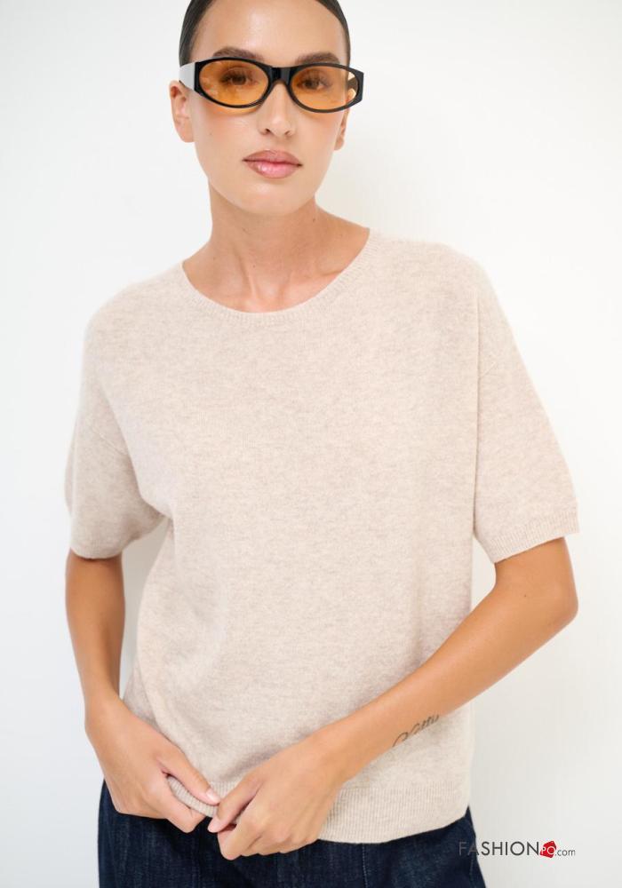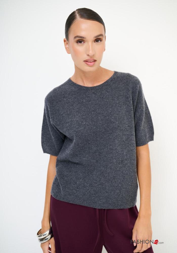 kurze ärmel u-boot ausschnitt Strickpullover aus Kaschmir-Mischung