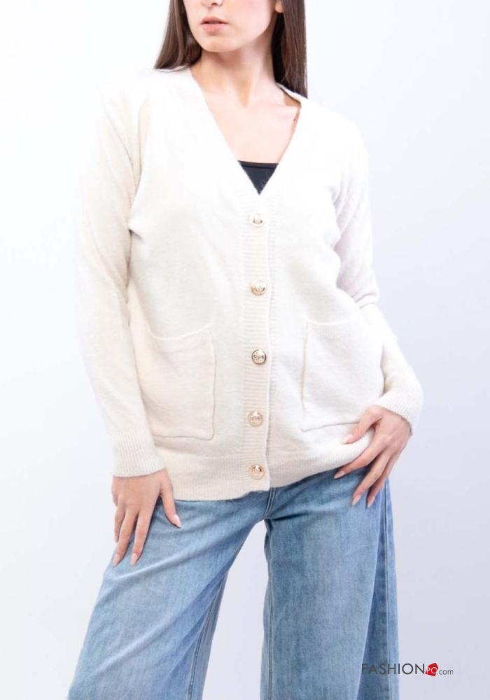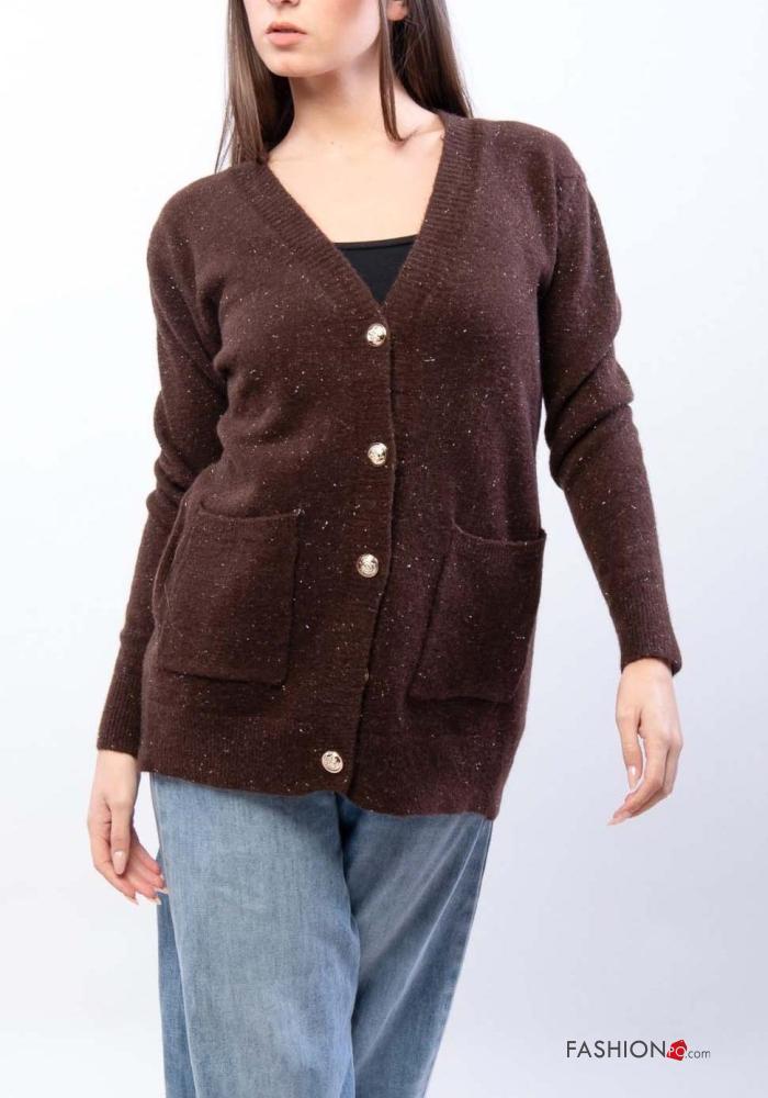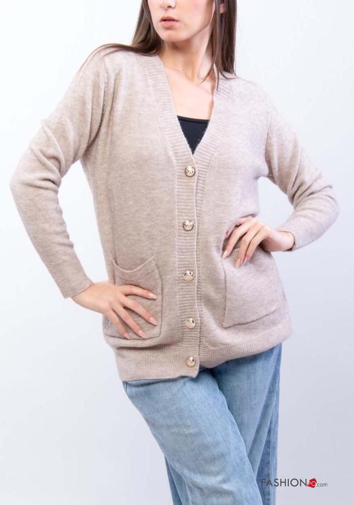 Home > Kleidung > Strickmode & Cardigans > lange ärmel Strickjacke mit Knöpfen mit V-Ausschnitt mit Taschen