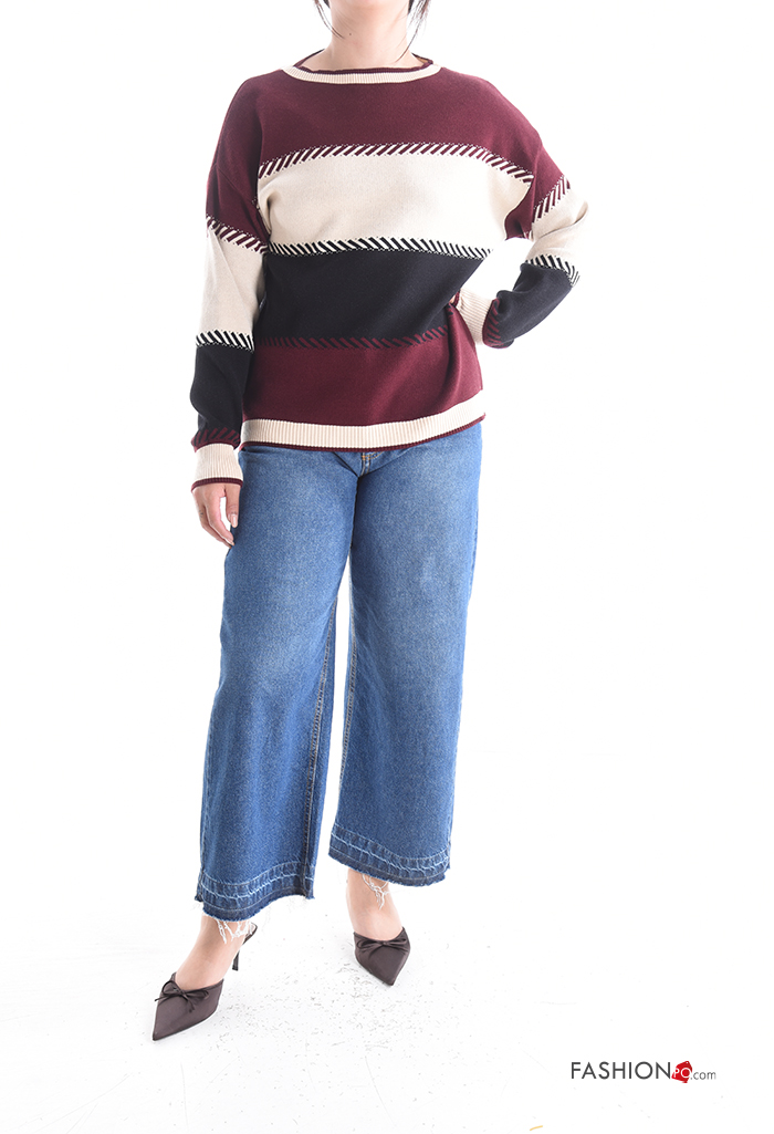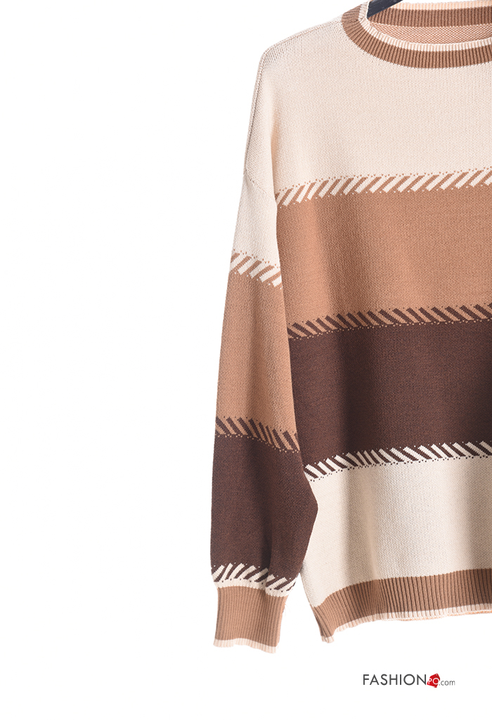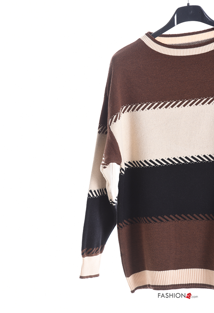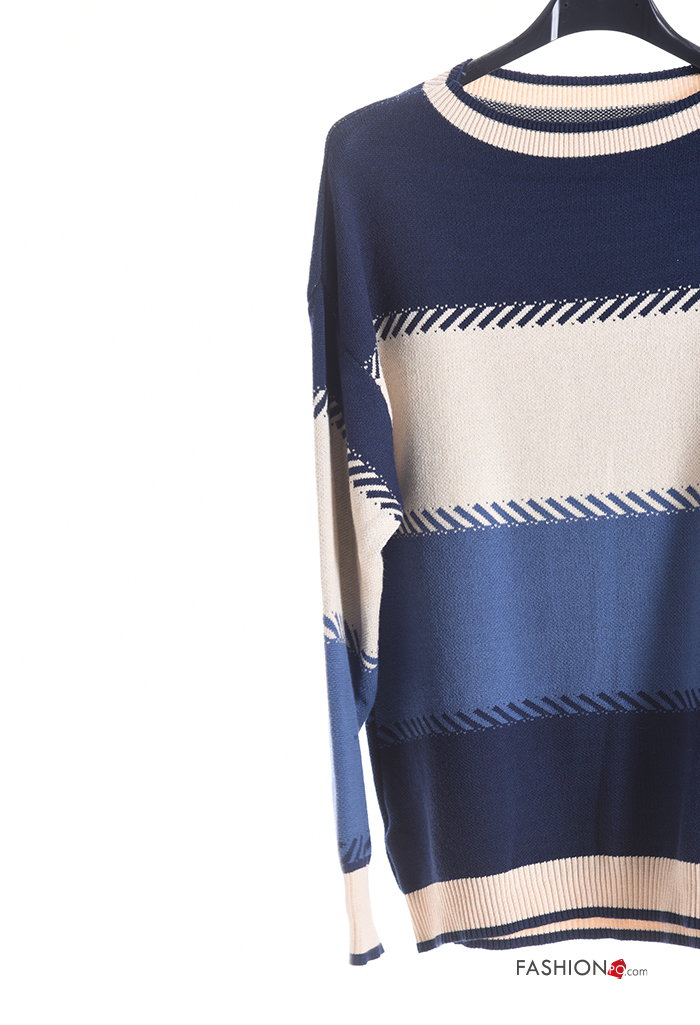 Streifenmuster lange ärmel u-boot ausschnitt Strickpullover