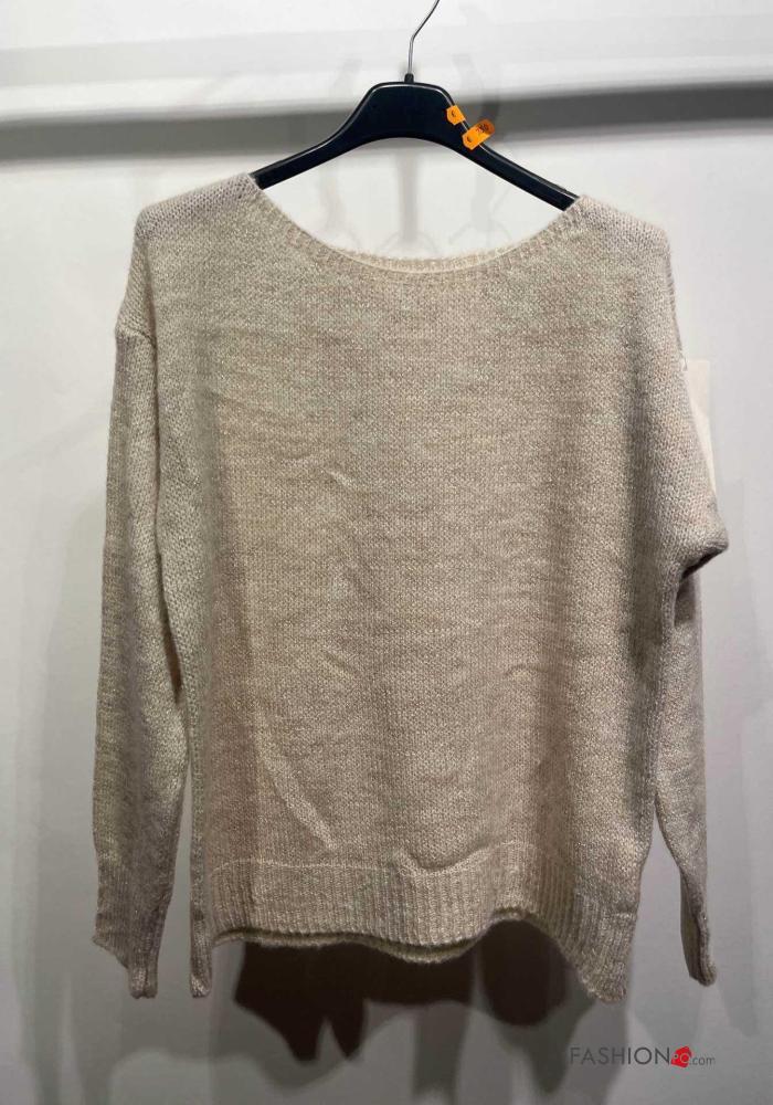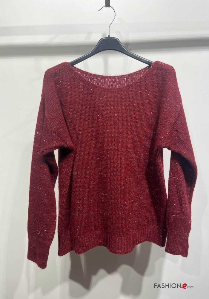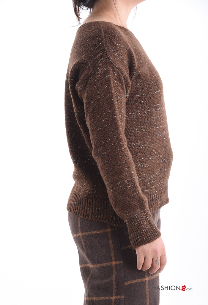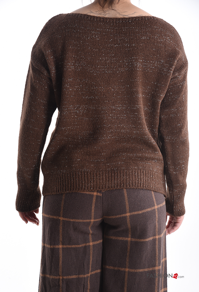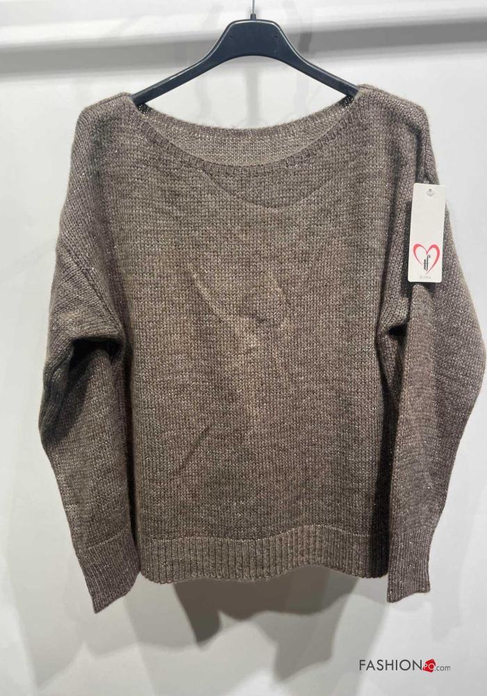 Lurex u-boot ausschnitt lange ärmel Strickpullover