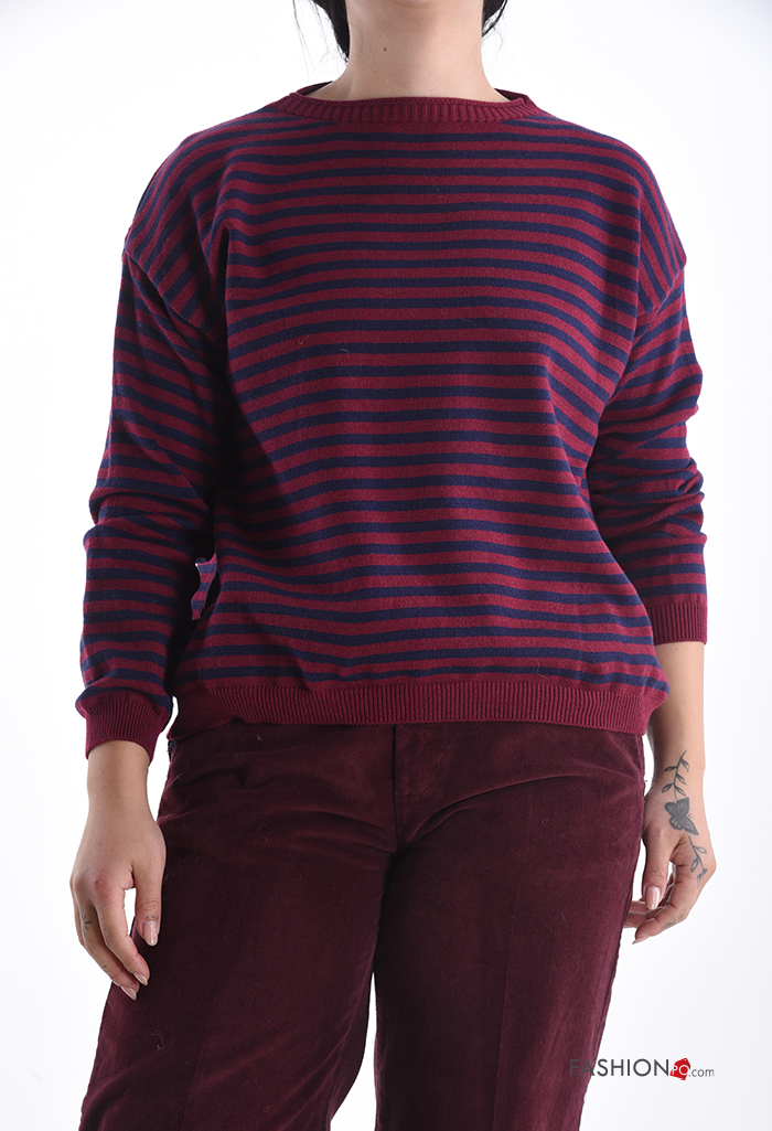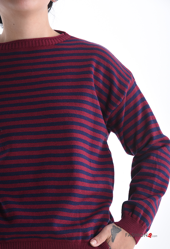 Streifenmuster lange ärmel u-boot ausschnitt Strickpullover