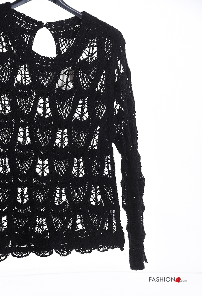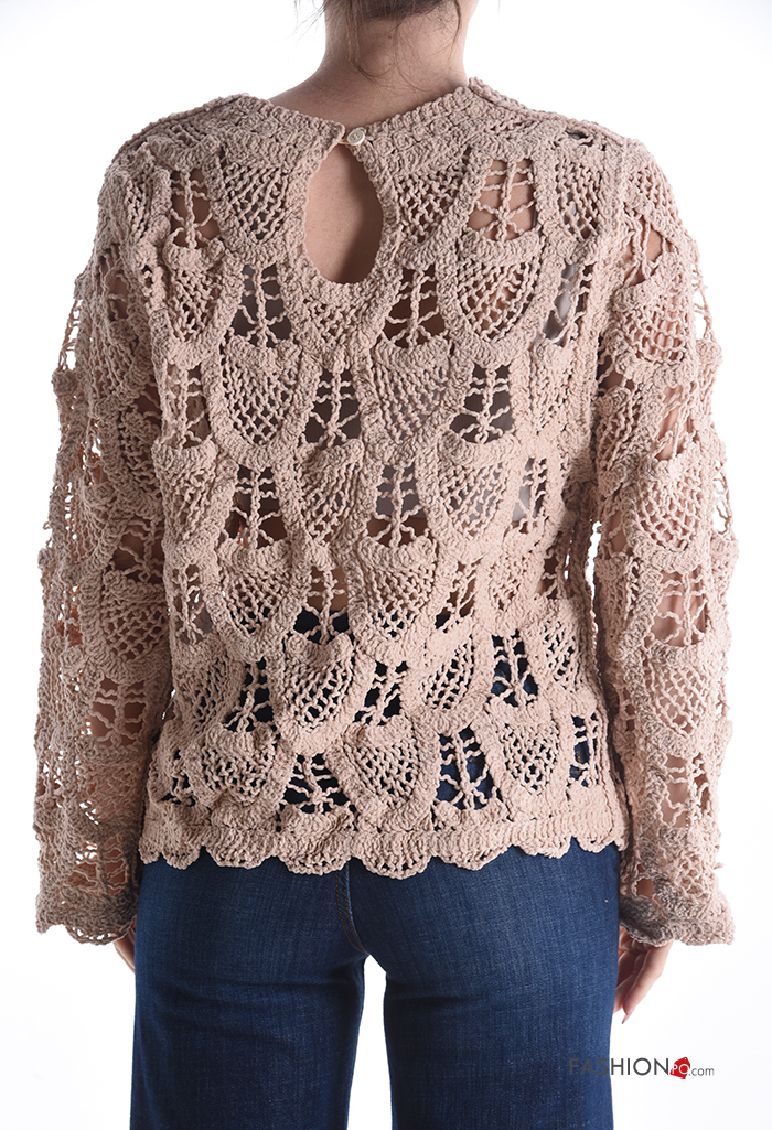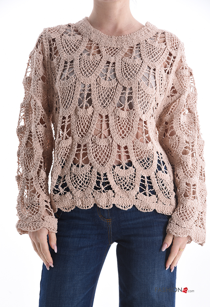 Home > Kleidung > Strickmode & Cardigans > Besticktes Muster lange ärmel u-boot ausschnitt häckeln Strickpullover
