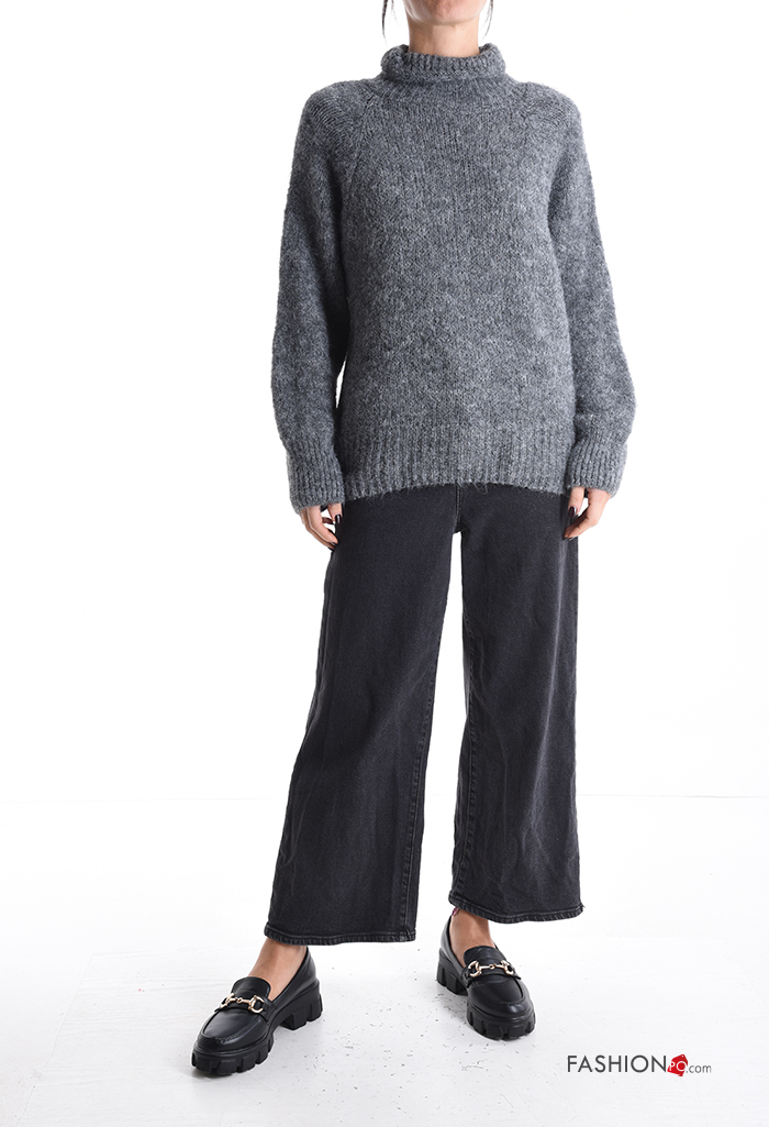 lange ärmel Strickpullover aus Wollmischung Rollkragen-