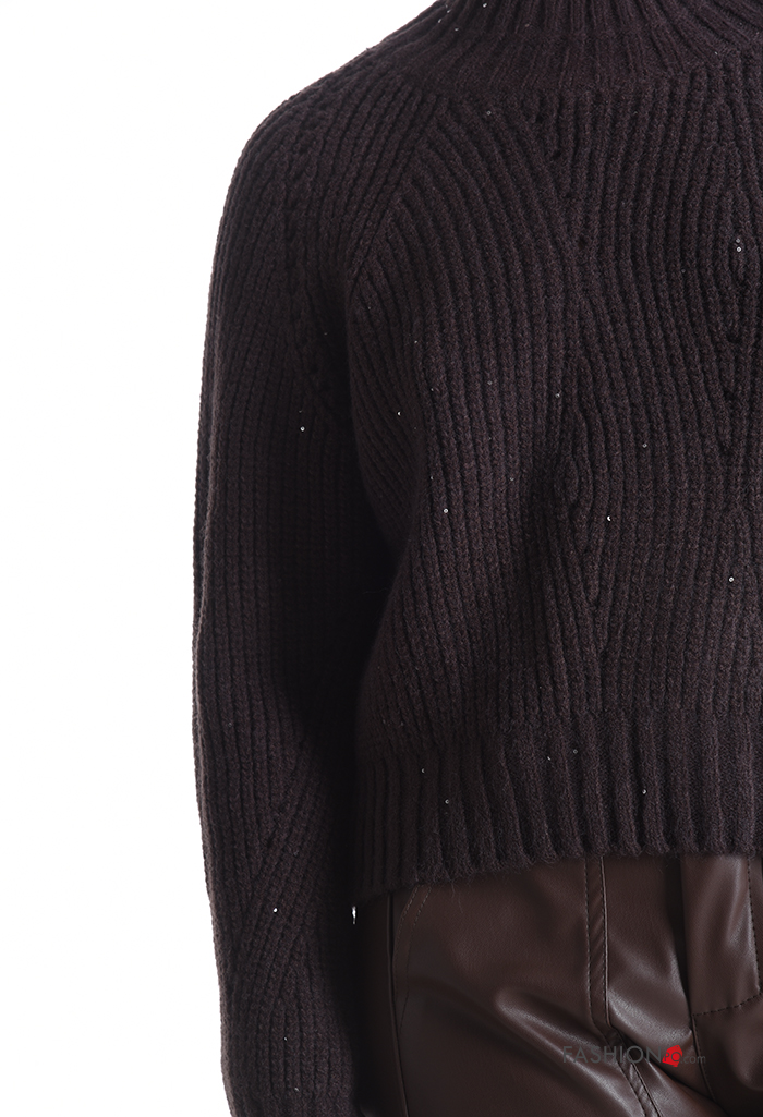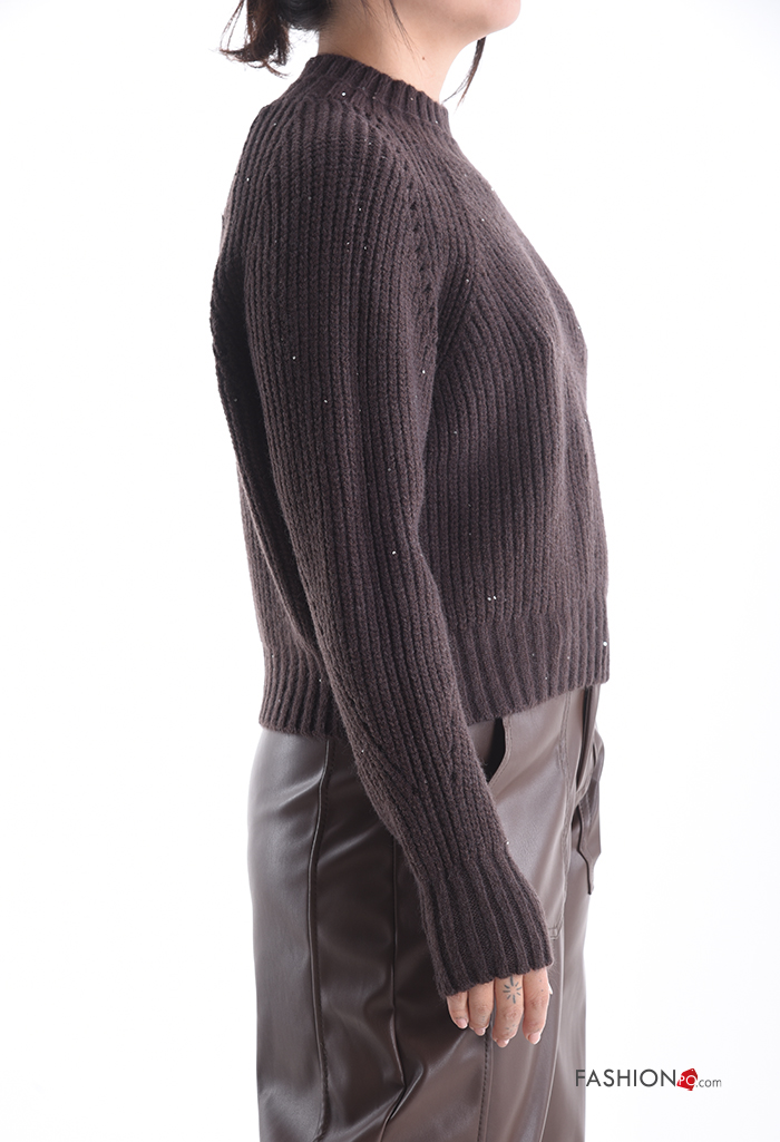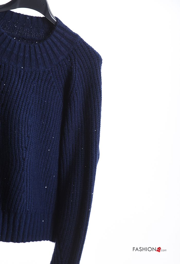 Home > Kleidung > Strickmode & Cardigans > Gerippte u-boot ausschnitt lange ärmel Strickpullover mit Pailletten