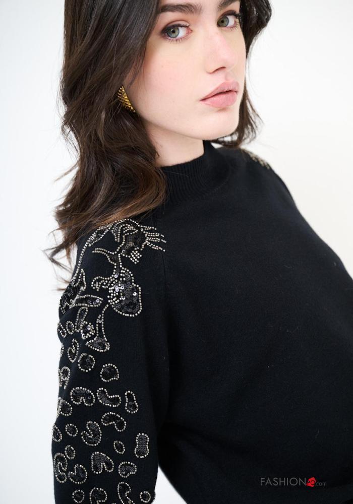 lange ärmel Strickpullover mit Pailletten mit Strasssteinen