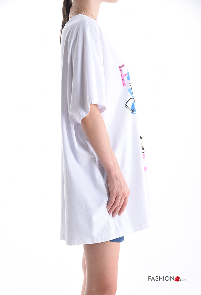 Bedrucktes Oversize u-boot ausschnitt kurze ärmel T-shirt aus Baumwolle