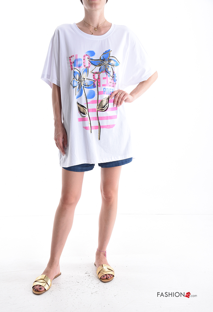 Home > Kleidung > Shirts & Tops > Bedrucktes Oversize u-boot ausschnitt kurze ärmel T-shirt aus Baumwolle