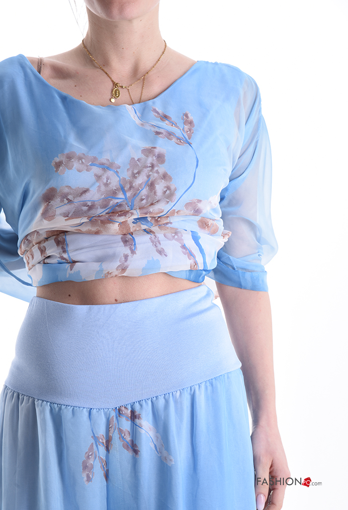 Blumenmuster wide leg zweiteilige Set 3/4 ärmel