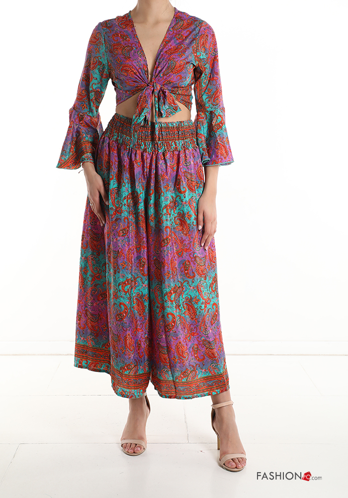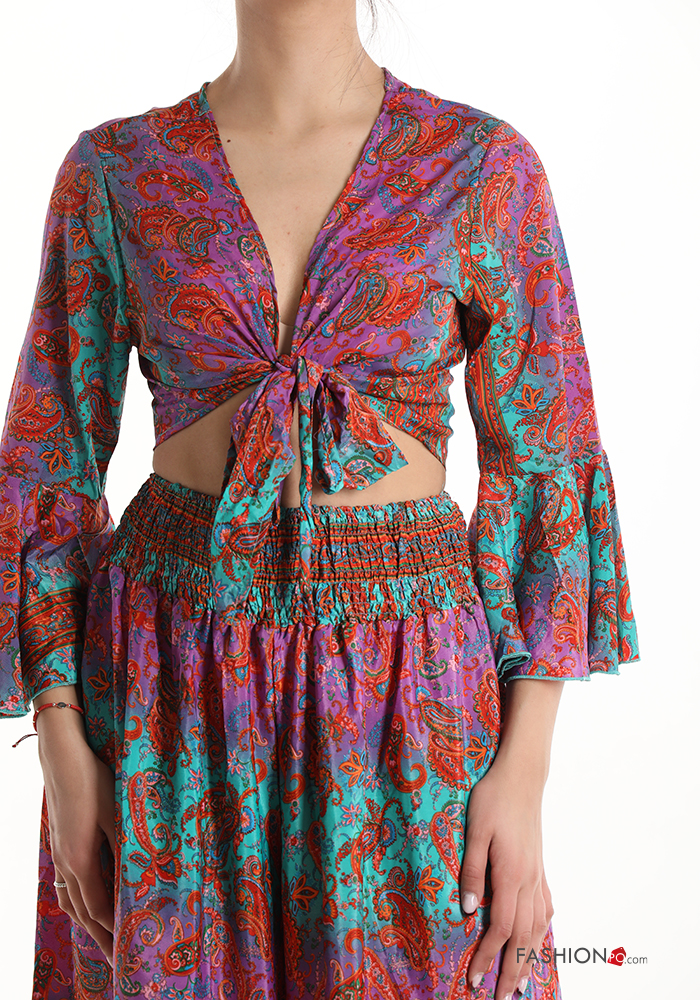 Jacquard-Muster zweiteilige Set aus Seide mit V-Ausschnitt mit knoten