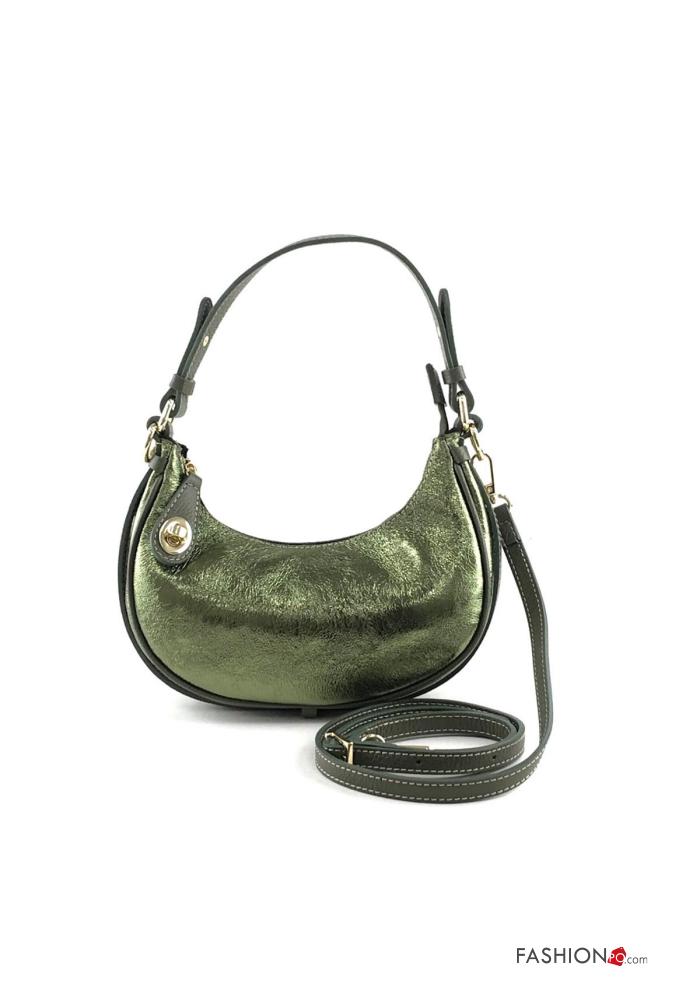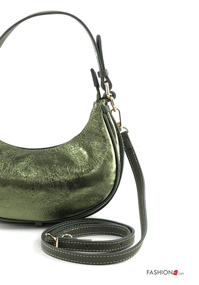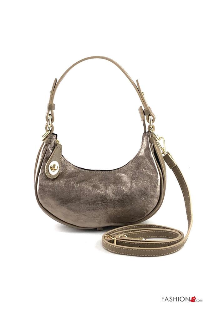 Home > Accessories > Bags > metallic Genuine Leather Bag with zip with shoulder strap