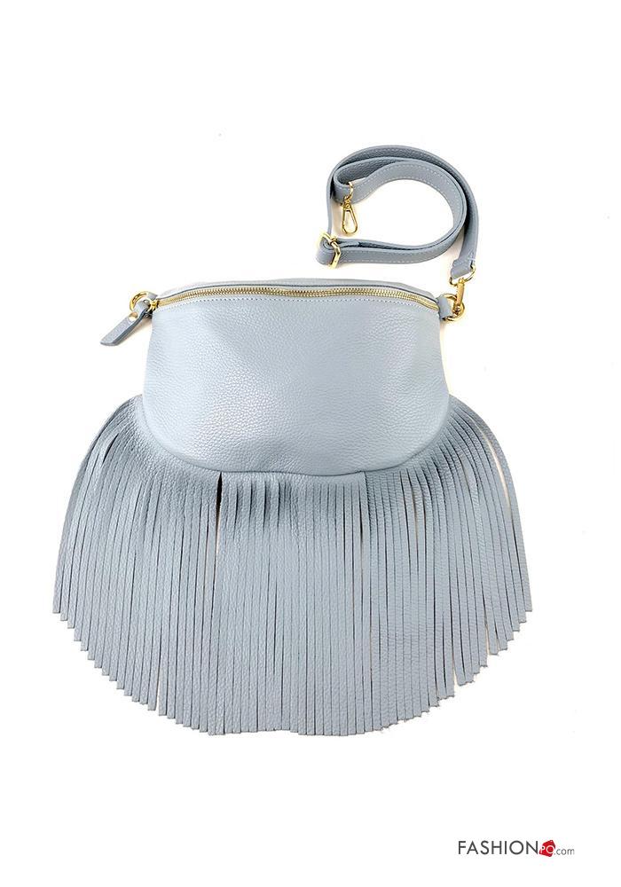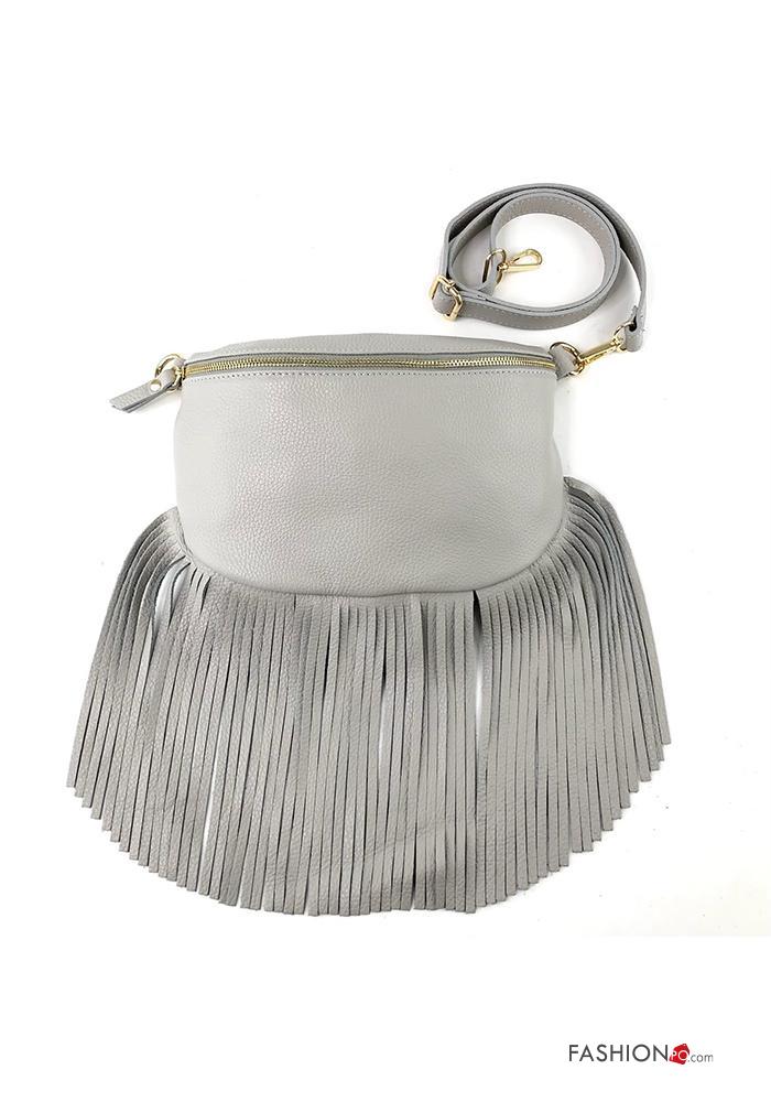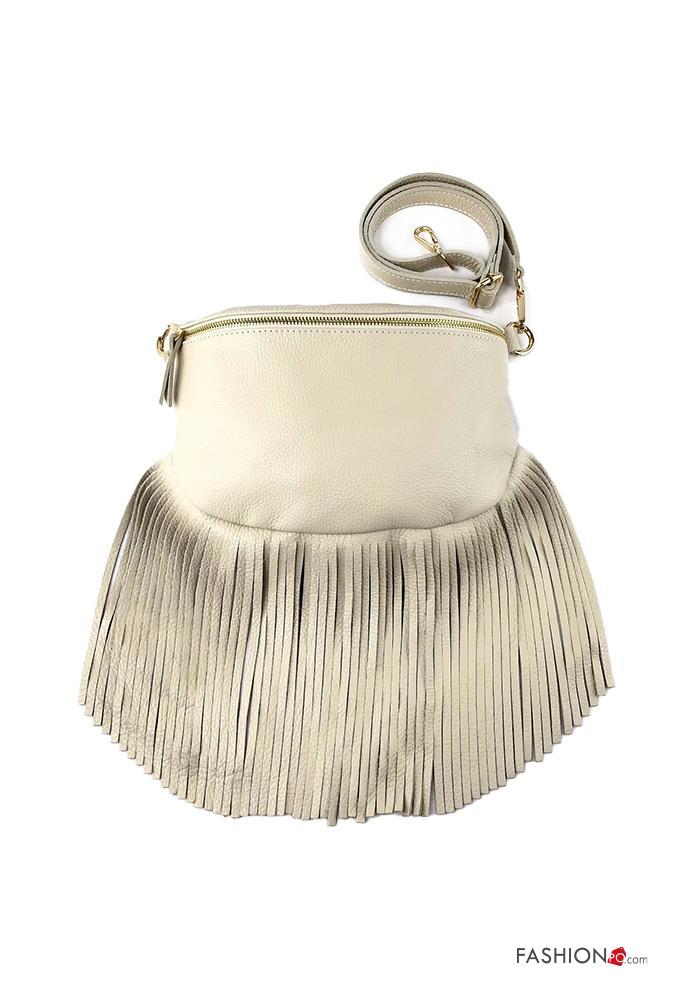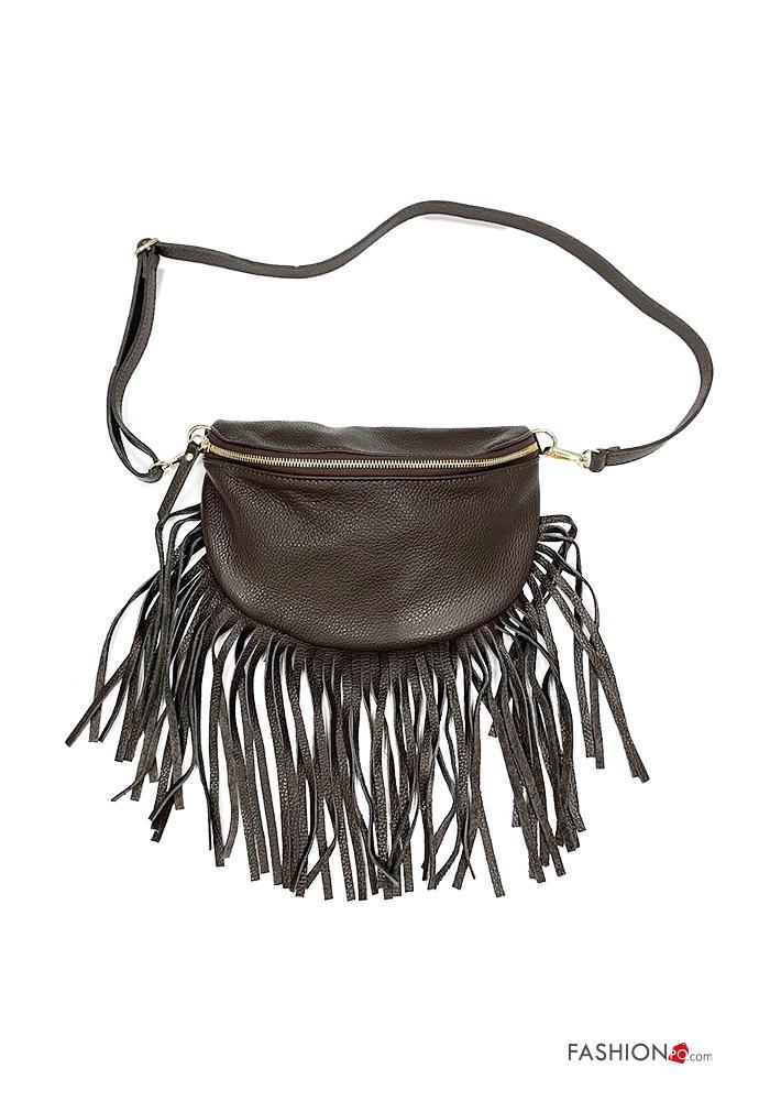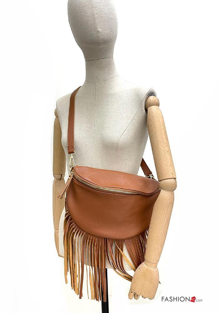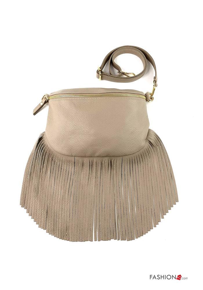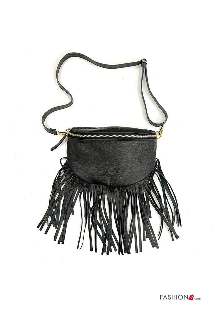 Home > Accessories > Bags > Genuine Leather Pouch bag with zip with shoulder strap with fringe
