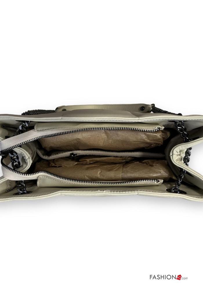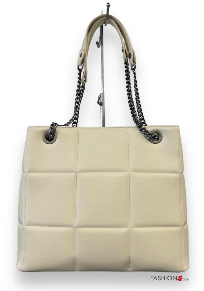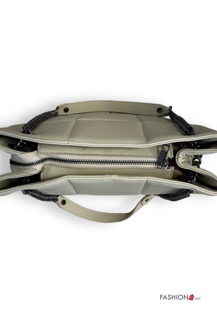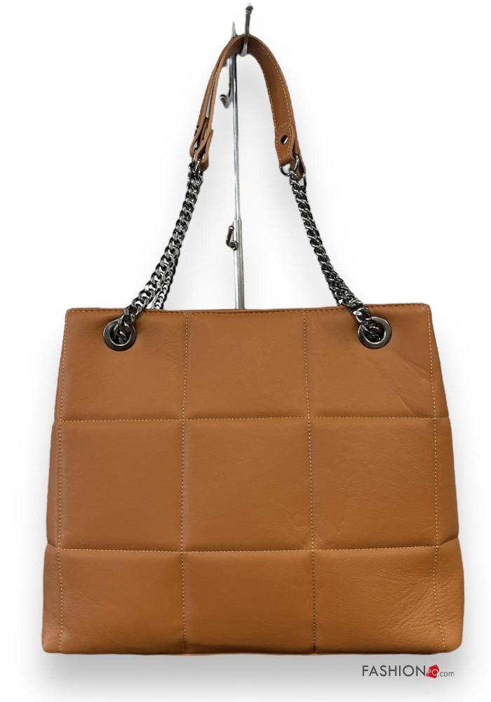 Genuine Leather Shoulder bag with zip with chain