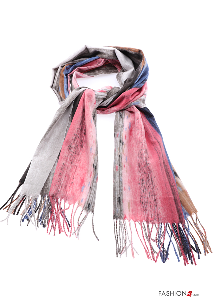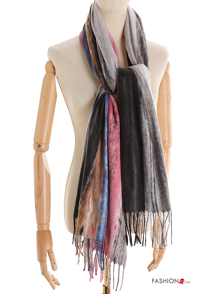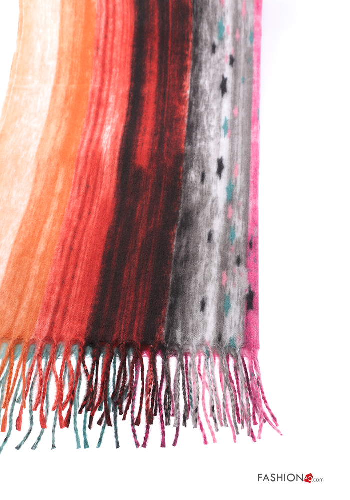 Abstract print Scarf with fringe