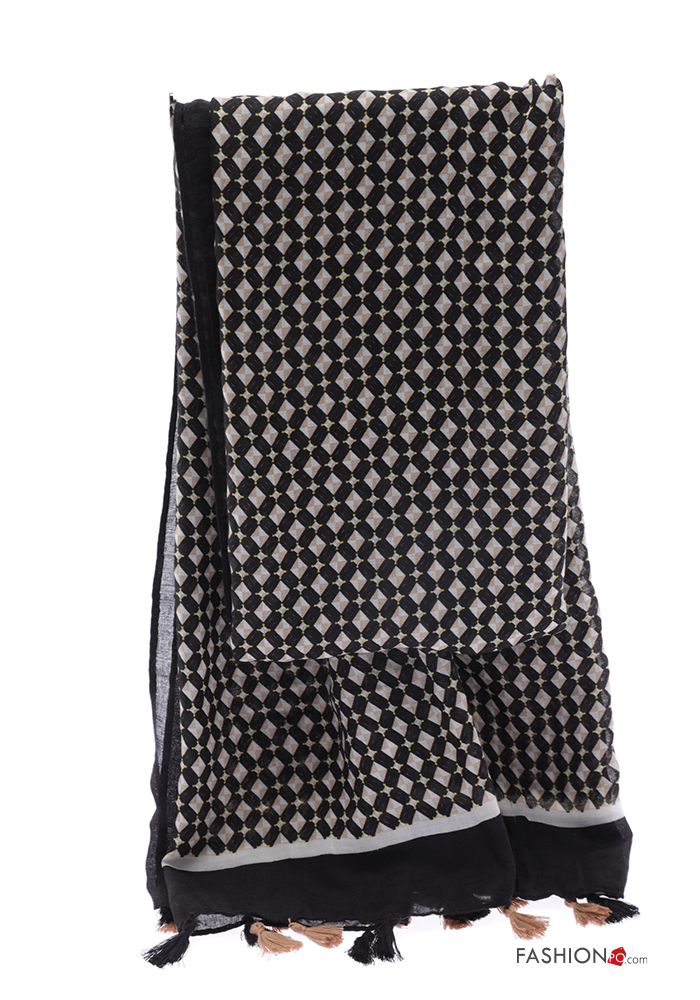 Geometric pattern Scarf with fringe