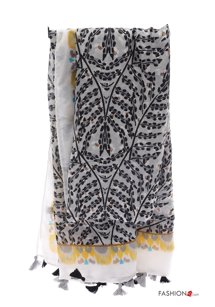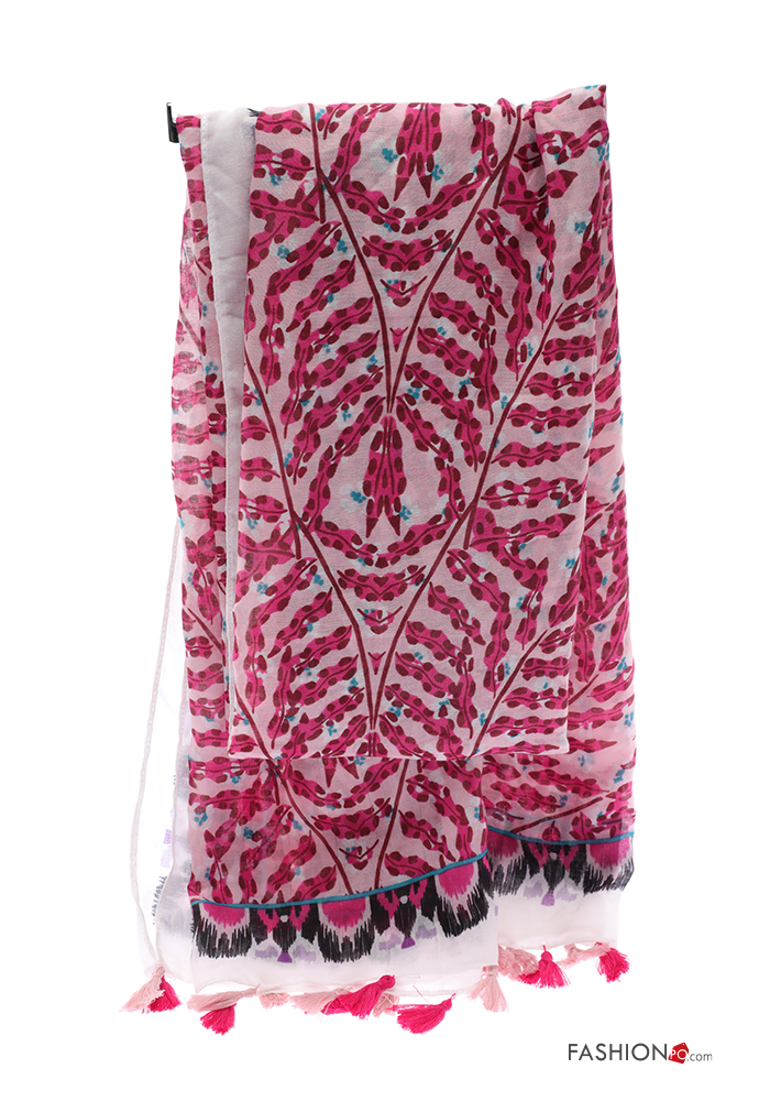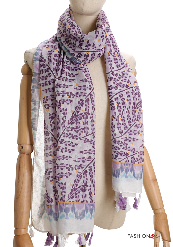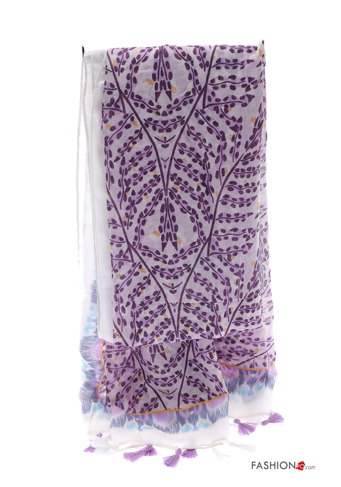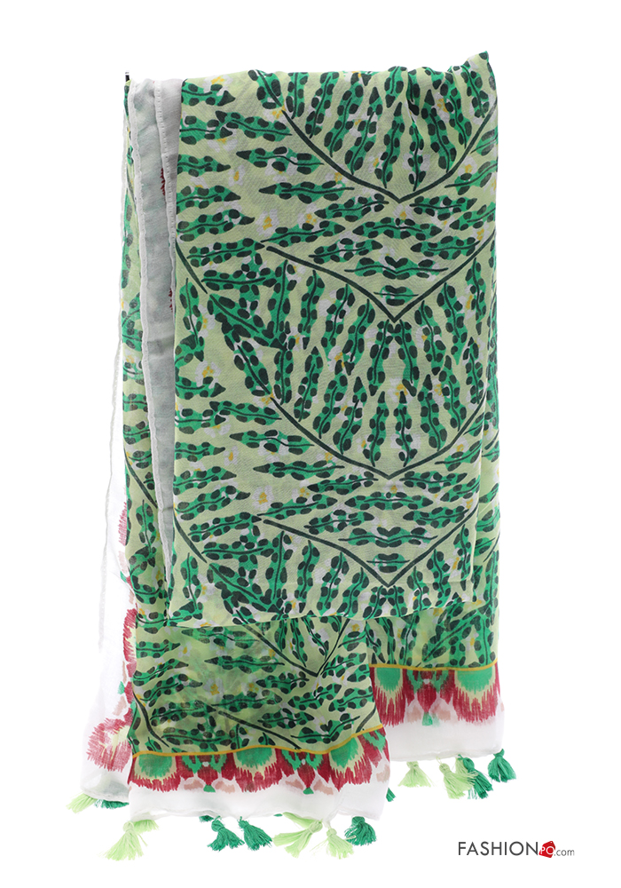 Leaf print Scarf with fringe