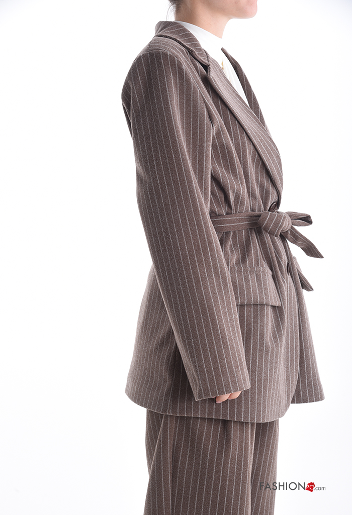 Home > Brands > ANGELA MODA > Striped long sleeve Coat with buttons with fabric belt