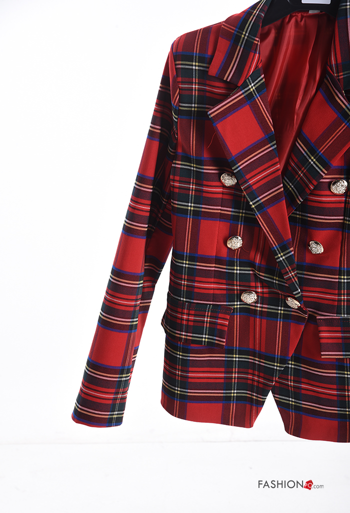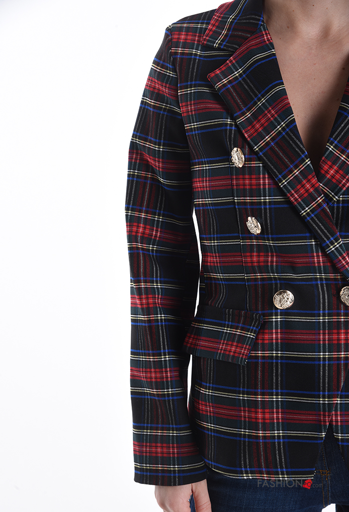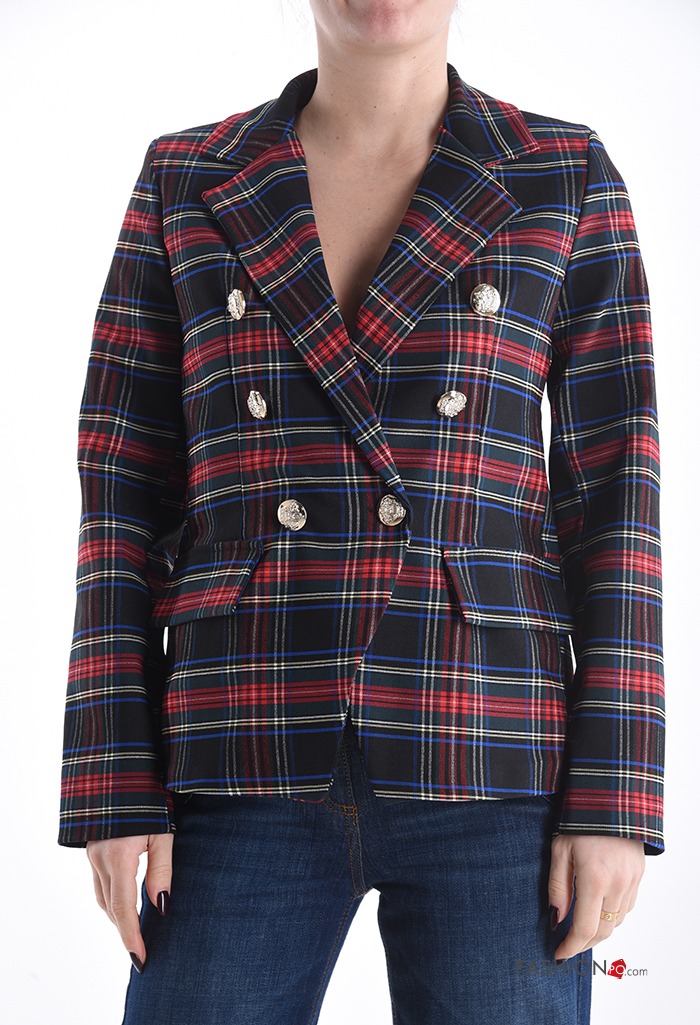 Home > Brands > ANGELA MODA > Tartan double-breasted long sleeve Jacket with buttons