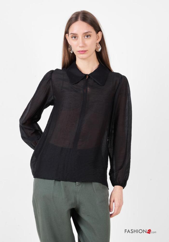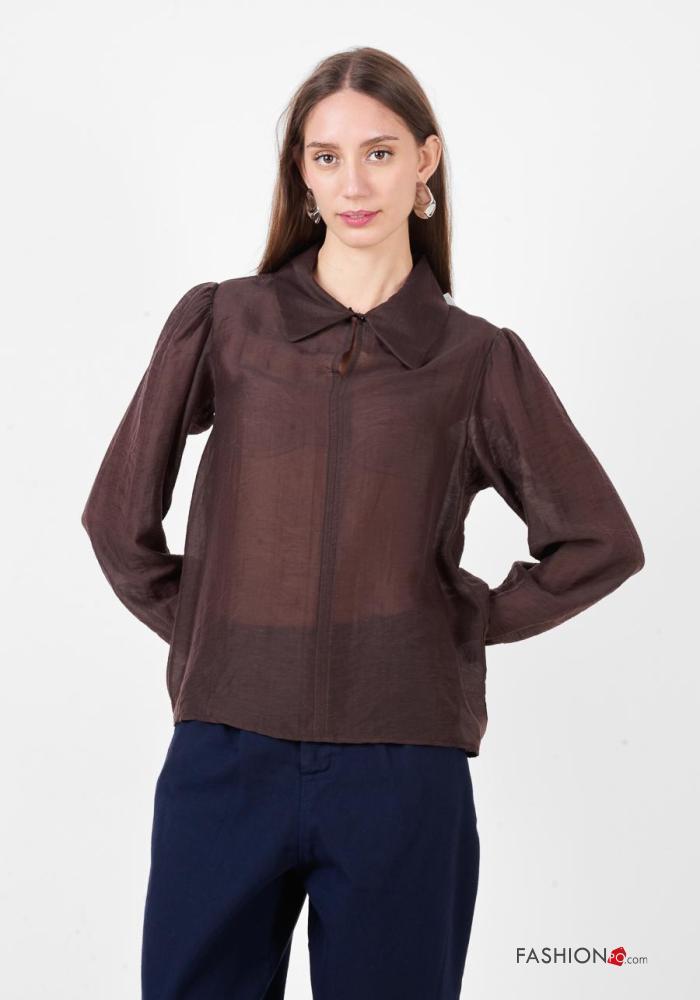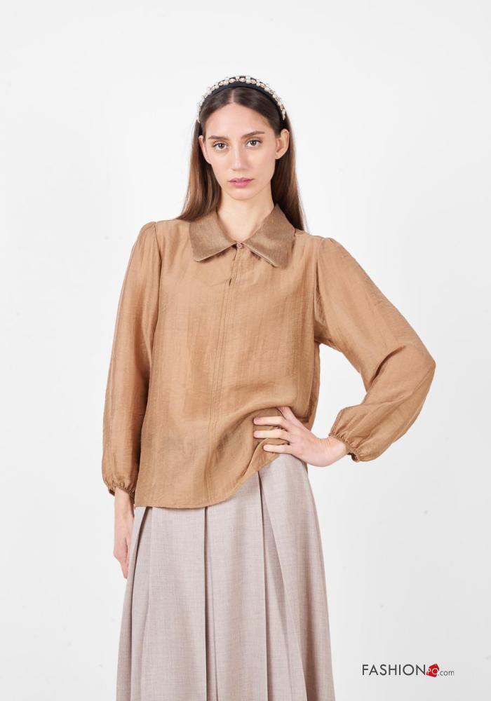long sleeve with collar Linen Blouse