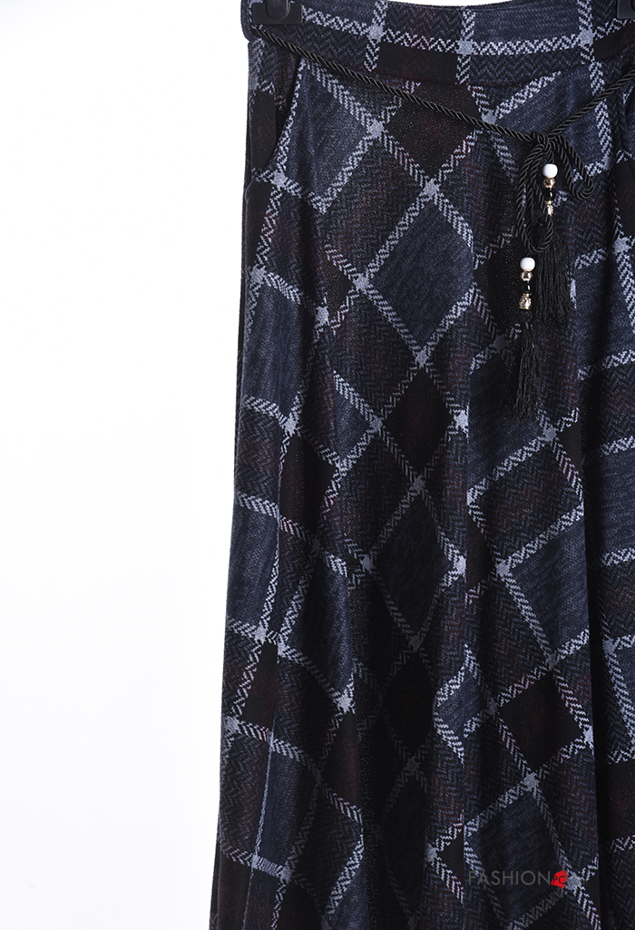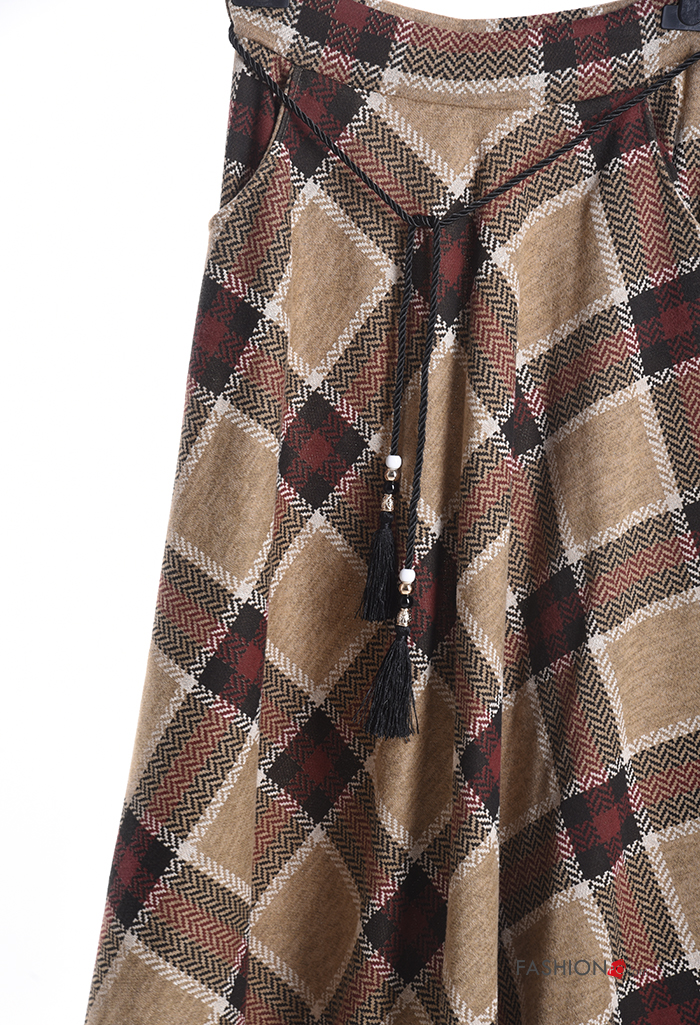 Home > Brands > GIOVANNI MODA > Tartan full Skirt with belt with string with pockets