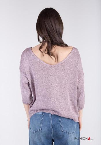 lurex Sweater with bow 3/4 sleeve with v-neck