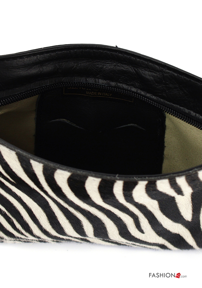 Animal print Genuine Leather Purse with zip with shoulder strap