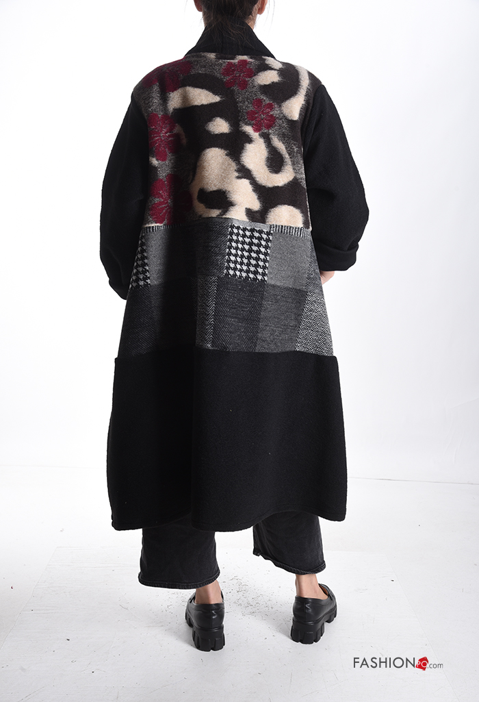 Home > Clothing > Coats & Jackets > Abstract print oversized long sleeve Wool Mix Duster Coat with pockets