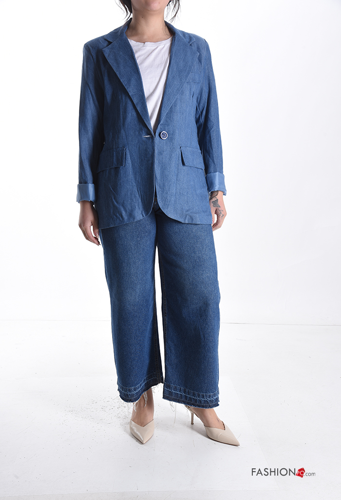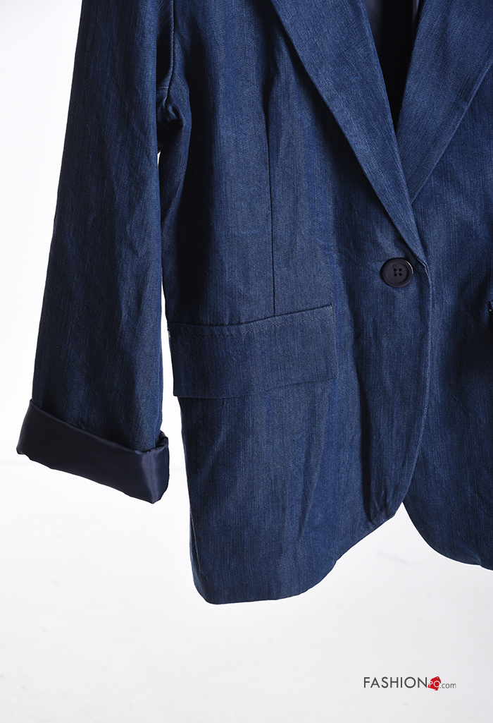 Home > Clothing > Coats & Jackets > denim with collar Blazer with buttons with lining