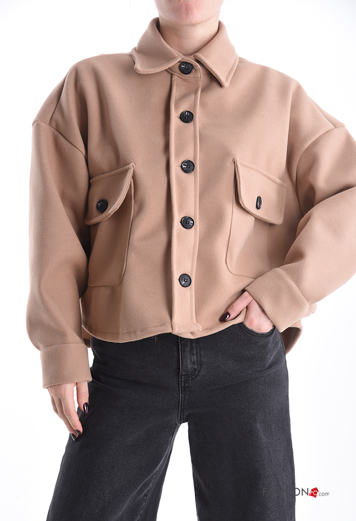 long sleeve with collar Bomber Jacket with buttons with pockets